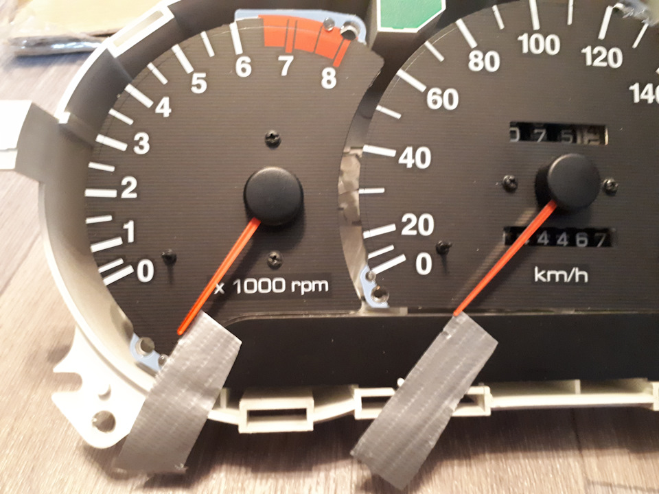 Стрелку спидометра снял без проблем а вот с тахометром беда((( буду позже переделывать его т.к. он у меня вылез со штоком а обратно вставить не так то и просто . ( нужно вставить его аккуратно в центр матора ( попасть в паз внутри ) и 2-3 раза сверху слегка стукнуть молотком. Но чет я чуть не добил чтоли))) переделаю потом.( щас она рывками ходит как то)
