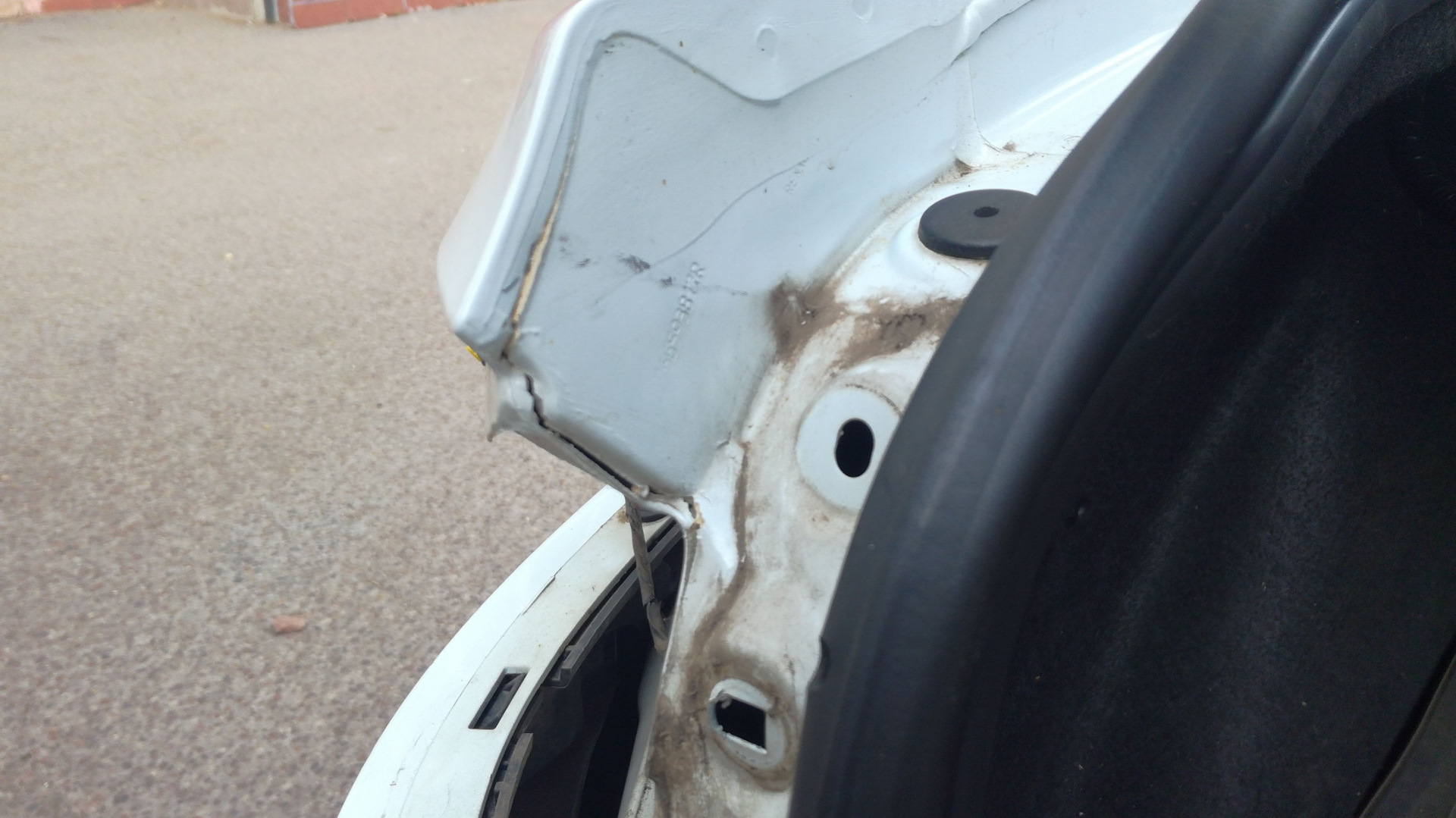А здесь хороший мастер постучит и можно обойтись минимальным слоем шпакли. только потом внутрянку хороший антикор сделай после спотера .