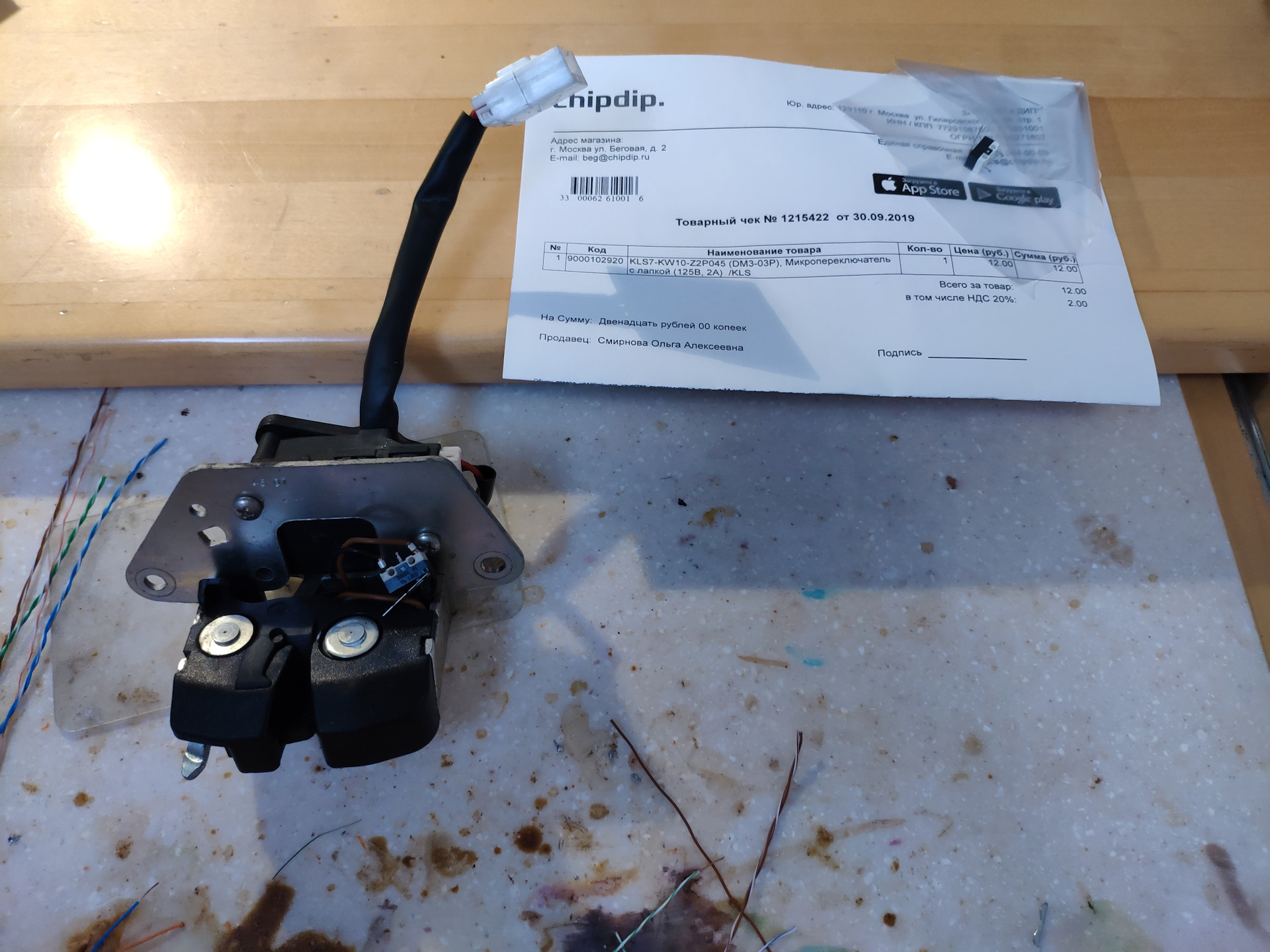 Сразу после покупки, в ночи, обнаружил, что при открытии багажника не загорается свет. При этом на приборке тоже нет индикации. Полез на форумы, искать, где концевик, но там написали, что он находится в замке, и придется менять замок. Решил разобрать, глянуть, что там: в результате был обнаружен неисправный концевик: