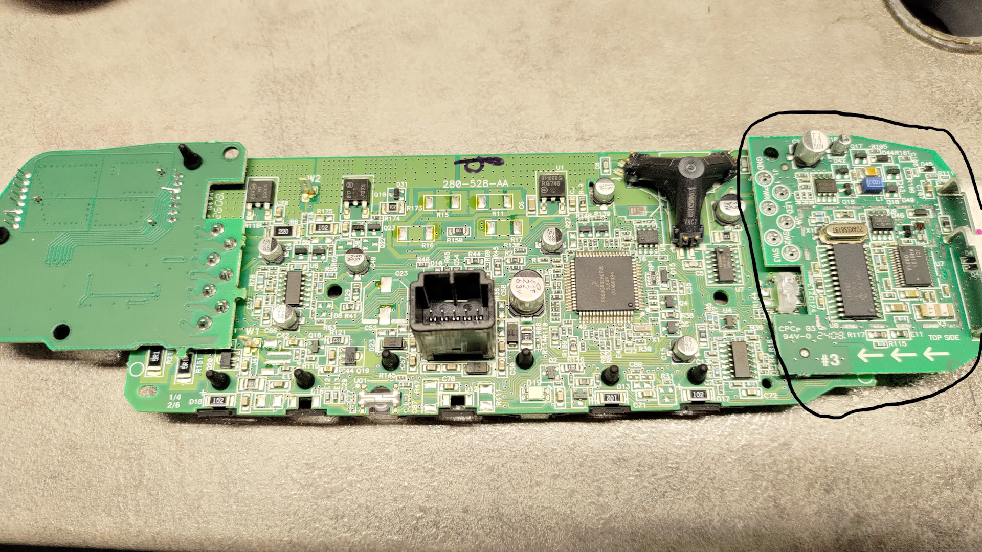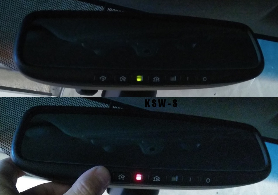 Все заработало и можно пользоваться-радоваться, но зеленый огонек при езде очень выделялся и было решено таки до него добраться и поменять на красный. Зеркало разобралось пластиковой карточкой на удивление легко и вот виновник недовольства.