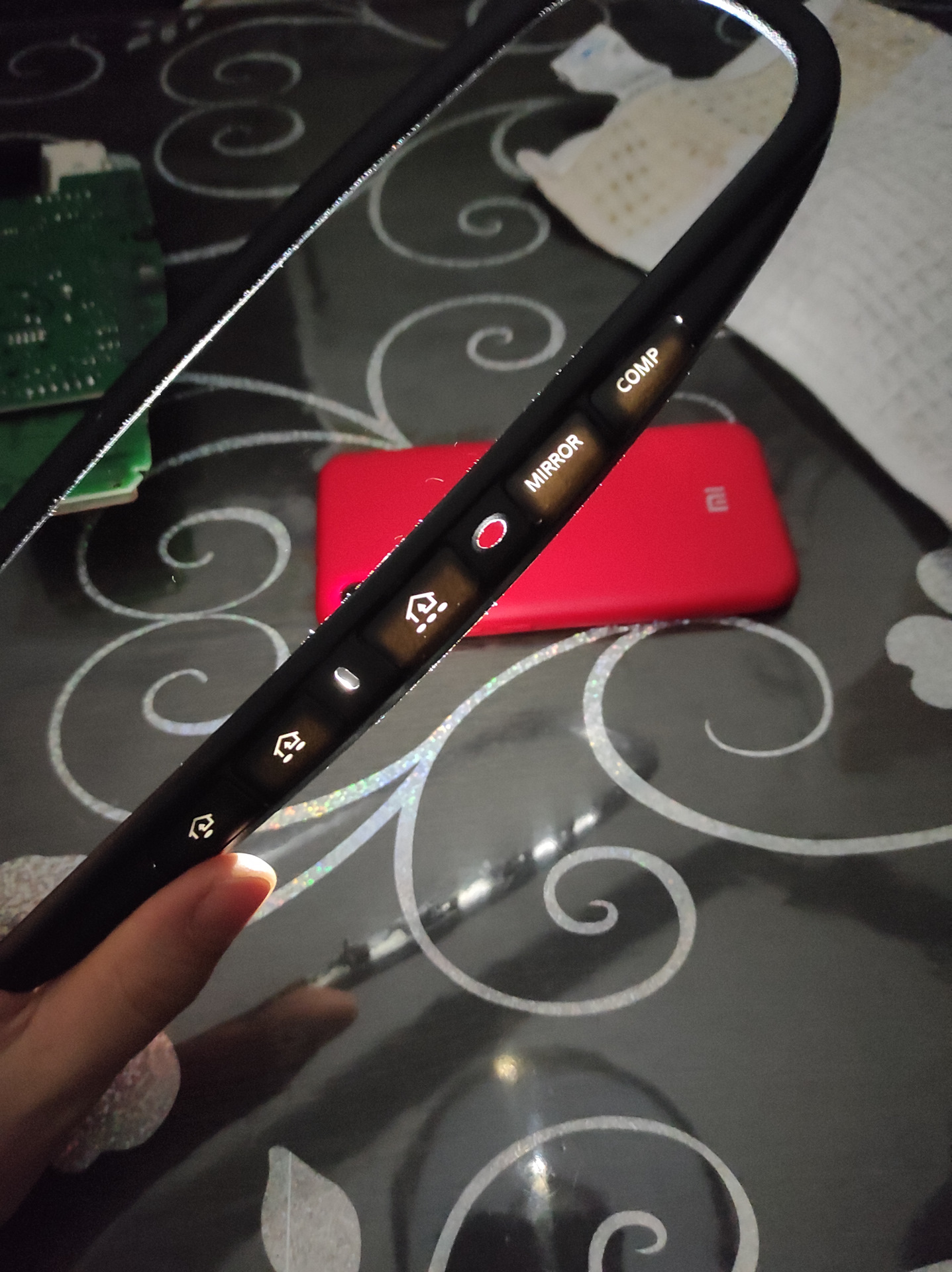 При внимательном рассмотрении платы увидел интересную деталь: оказывается такие зеркала бывают с подсветкой кнопок, все места на плате присутствуют и можно попробовать допаять детали 🤔Правда глухие кнопки сводили на нет все усилия. Поглядел мануал, есть же с подсветкой