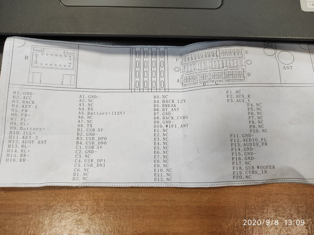 Такая же беда, все провода перепробовал, саб (активный)играл только на синем и то при включении радио, потом сам стал играть и с флешки, сейчас вообще не включается. Включение мафона сделал через кнопку в разрез желтого провода (постоянный+). Могу я подключить управляющий провод от саба в разрез к этой же кнопке. Т.е при нажатии на кнопку будет запускаться ГУ и сам саб, всё верно? А за распиновку отдельное спасибо.
