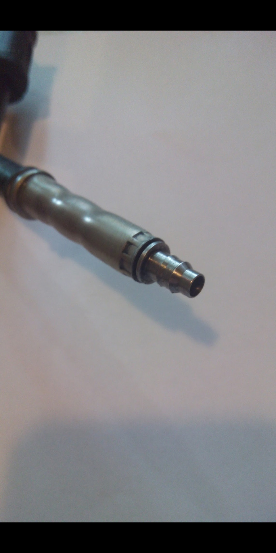 Не, именно в трубке стоял завальцованный. И он, судя по всему, обратный, когда поеду в гараж, сфоткаю старую трубку. Интересно она у меня сопливить стала, прямо по резине а не там где заделана трубка. Я потом давление ей дал в воде 7атм, прямо из резины пузырьки выходили.