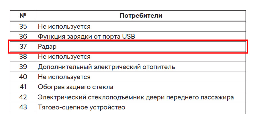 У меня по-моему тоже был пустой, так как по факту радара в машине нет. Плюсовой красный провод вместе с предохранителем вставляете в гнездо № 37. Минусовой черный провод прикручивайте на кузов в качестве «массы».