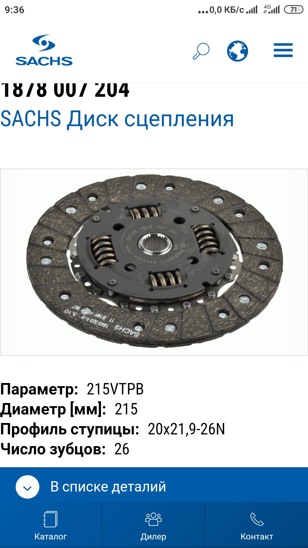 Здравствуйте! Поступили по моей схеме! Я тут комплект неполный Закс заказал для сравнения. Диск вроде наш, ведомый, а вот " карзин"а нет! Хотя по ступице диска то же есть вопросы.