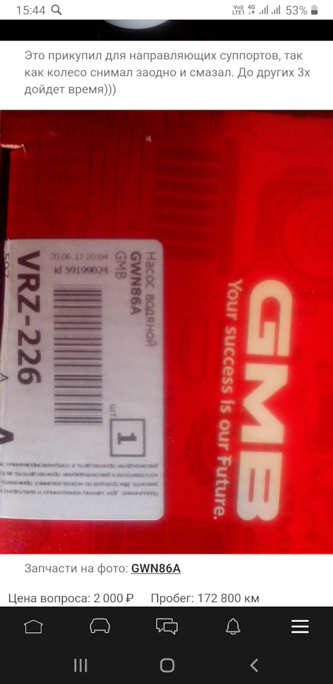 И попутно была заменена помпа, т.к. были следы течи на ней. Менялась она 30 т.км. назад. На этот раз взял DOLZ.