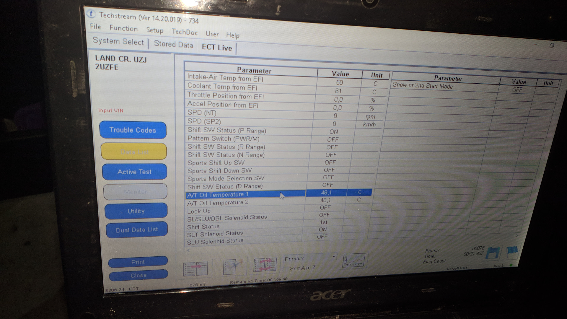 смотрим температуру через Techstream именно по датчику №1.