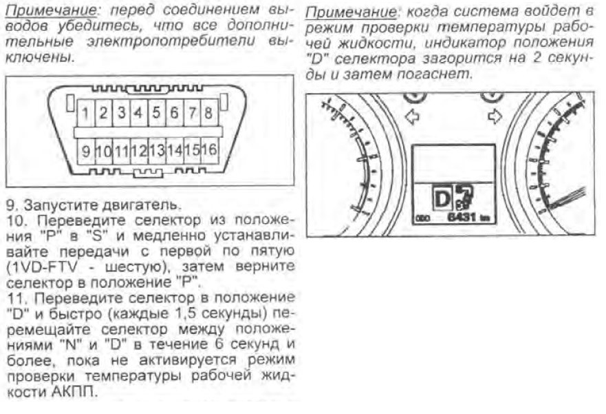 Для тех, у кого не будет под рукой Techstream, температуру АКПП определяем по книге:
