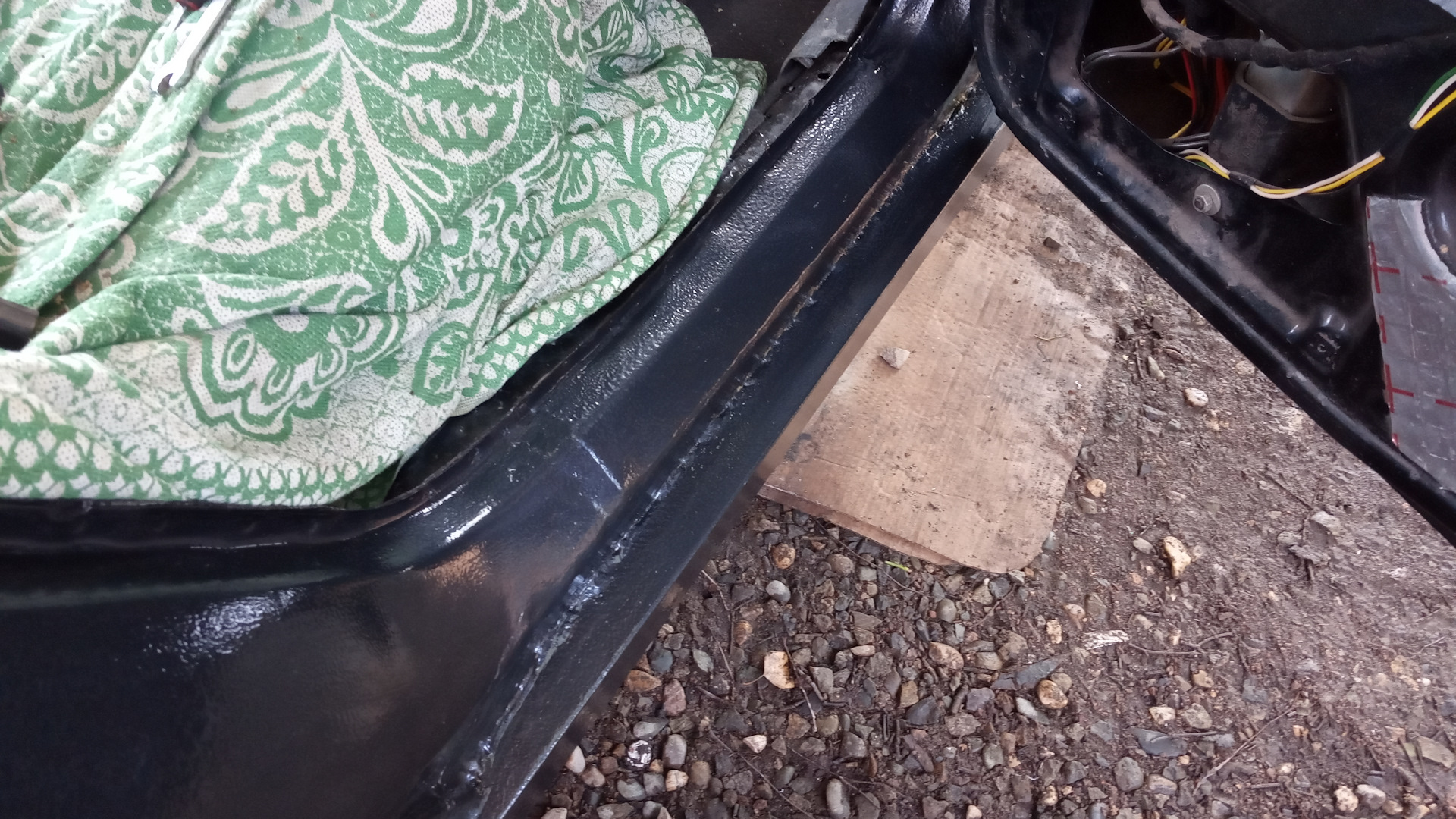 Когда всё сварные работы закончились, начал с проёмов дверей, тут использовал только кисть