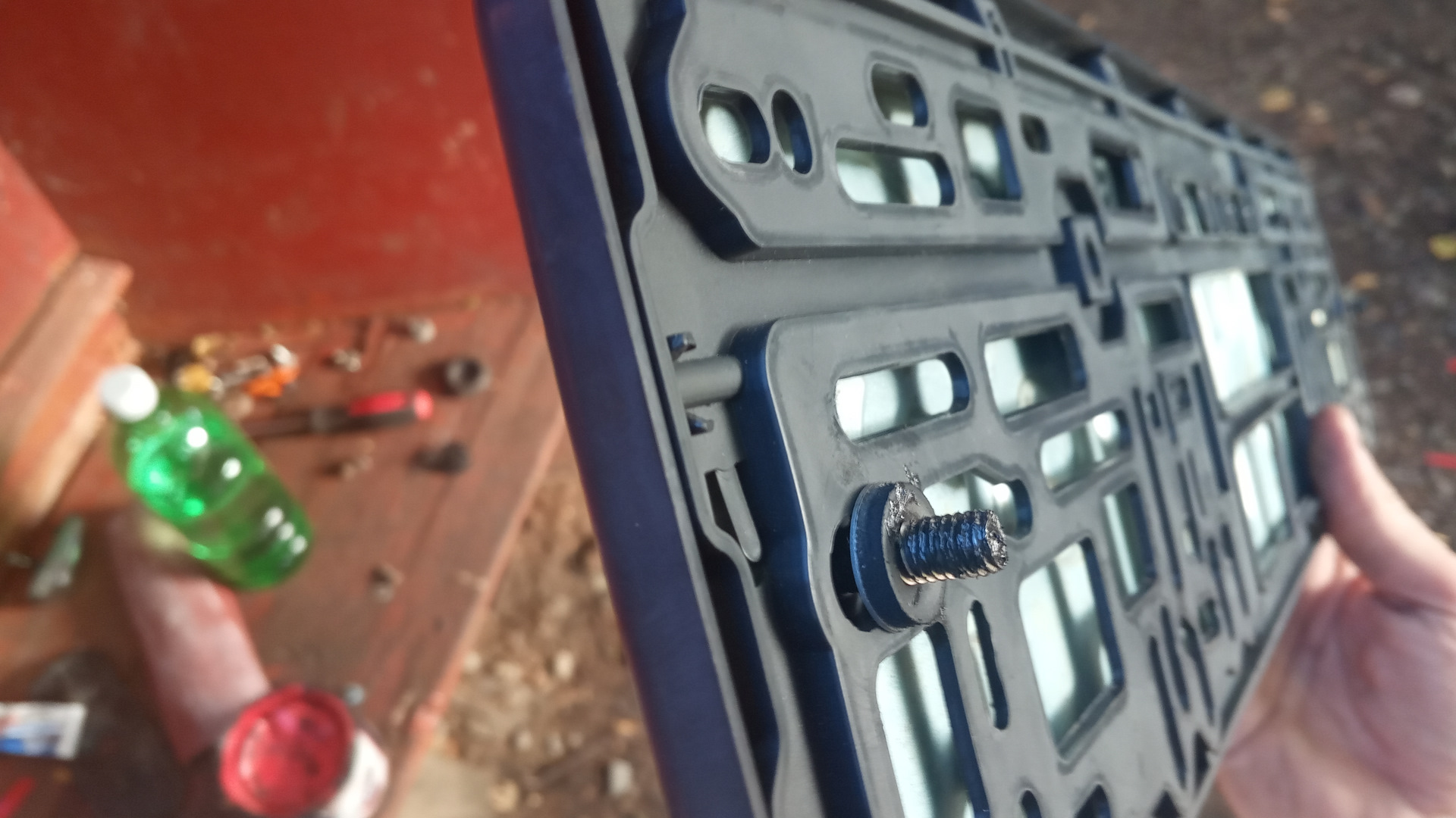 Рамку крепления номера поставил чёрную, без надписей, весь крепёж нержавеющий.