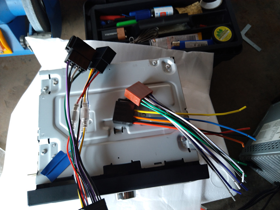 Голубой — основной разьем (питание, колонки, кнопки на руле и т.д.)