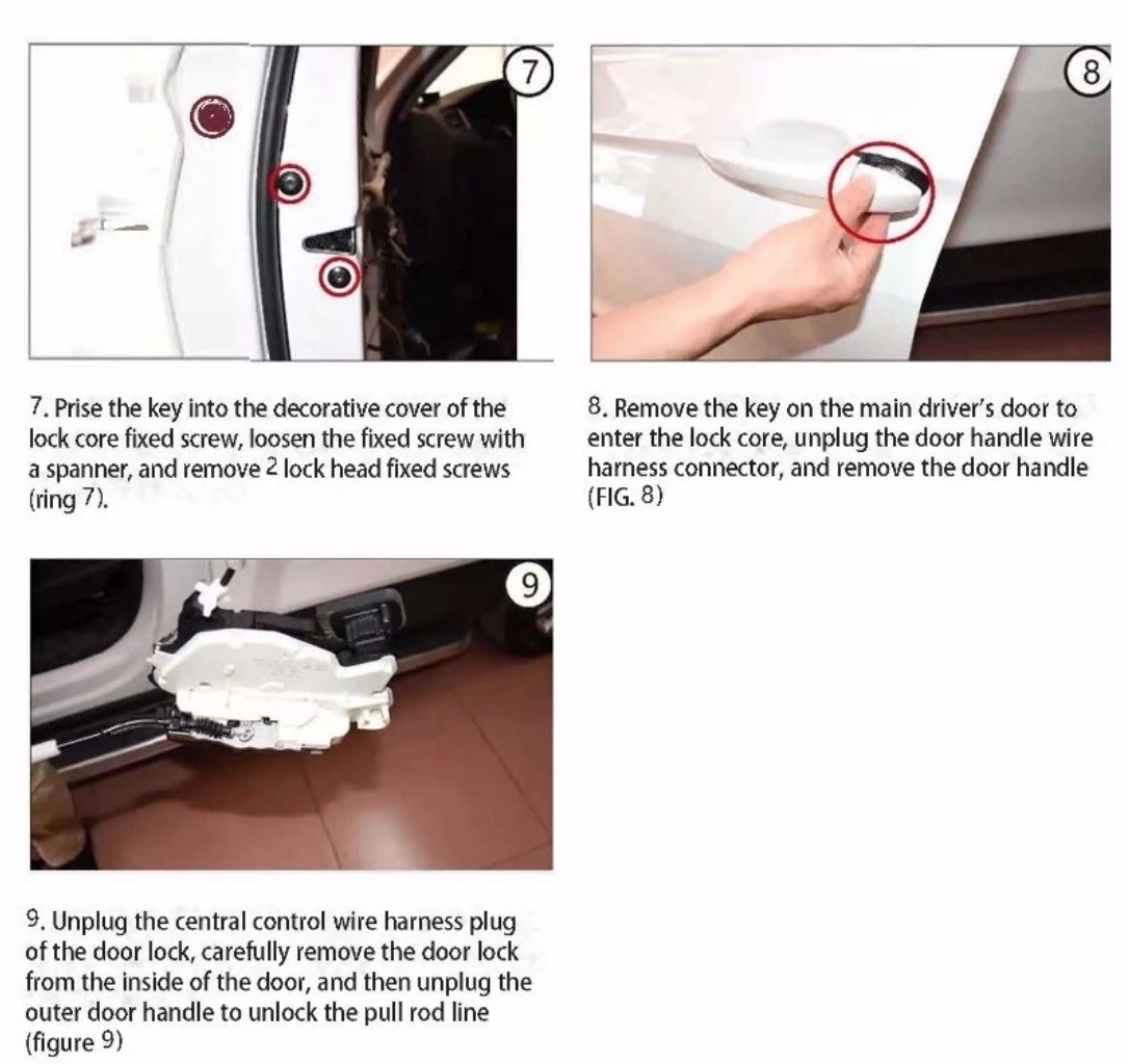 Пункты 2-3 используются на всех дверях для извлечения штатного механизма закрывания дверей.