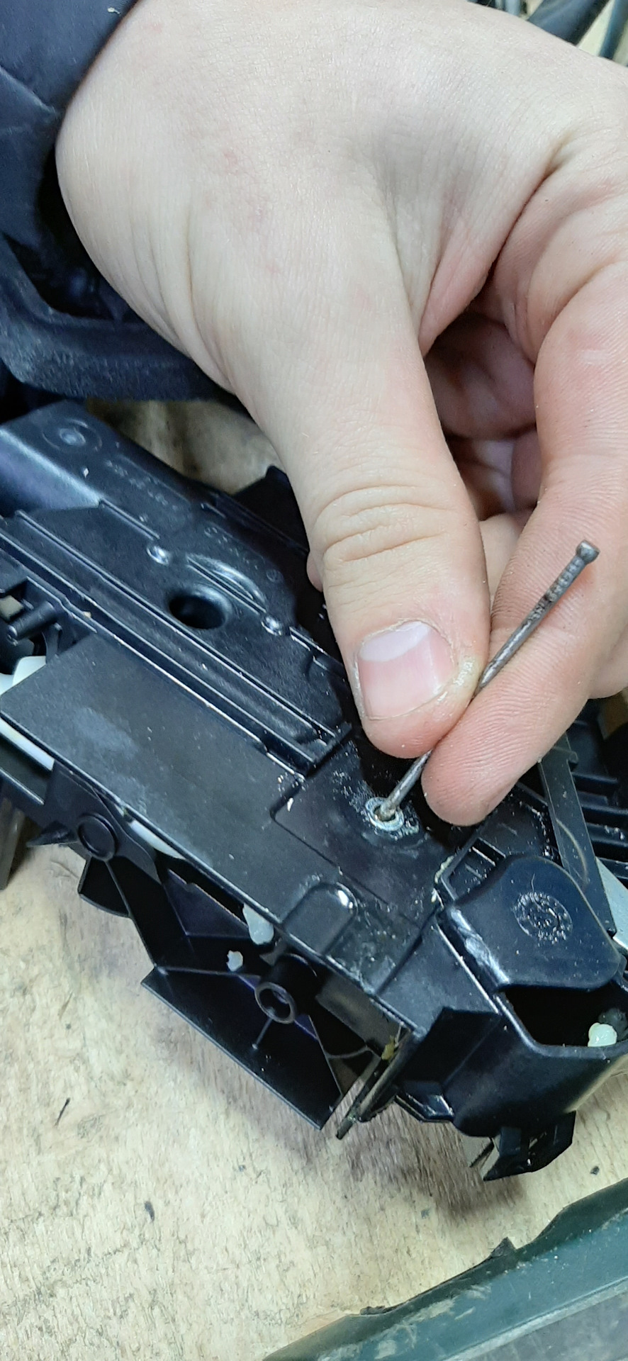 Ну для начала, рассверливаем клепку и полностью её вытаскиваем.