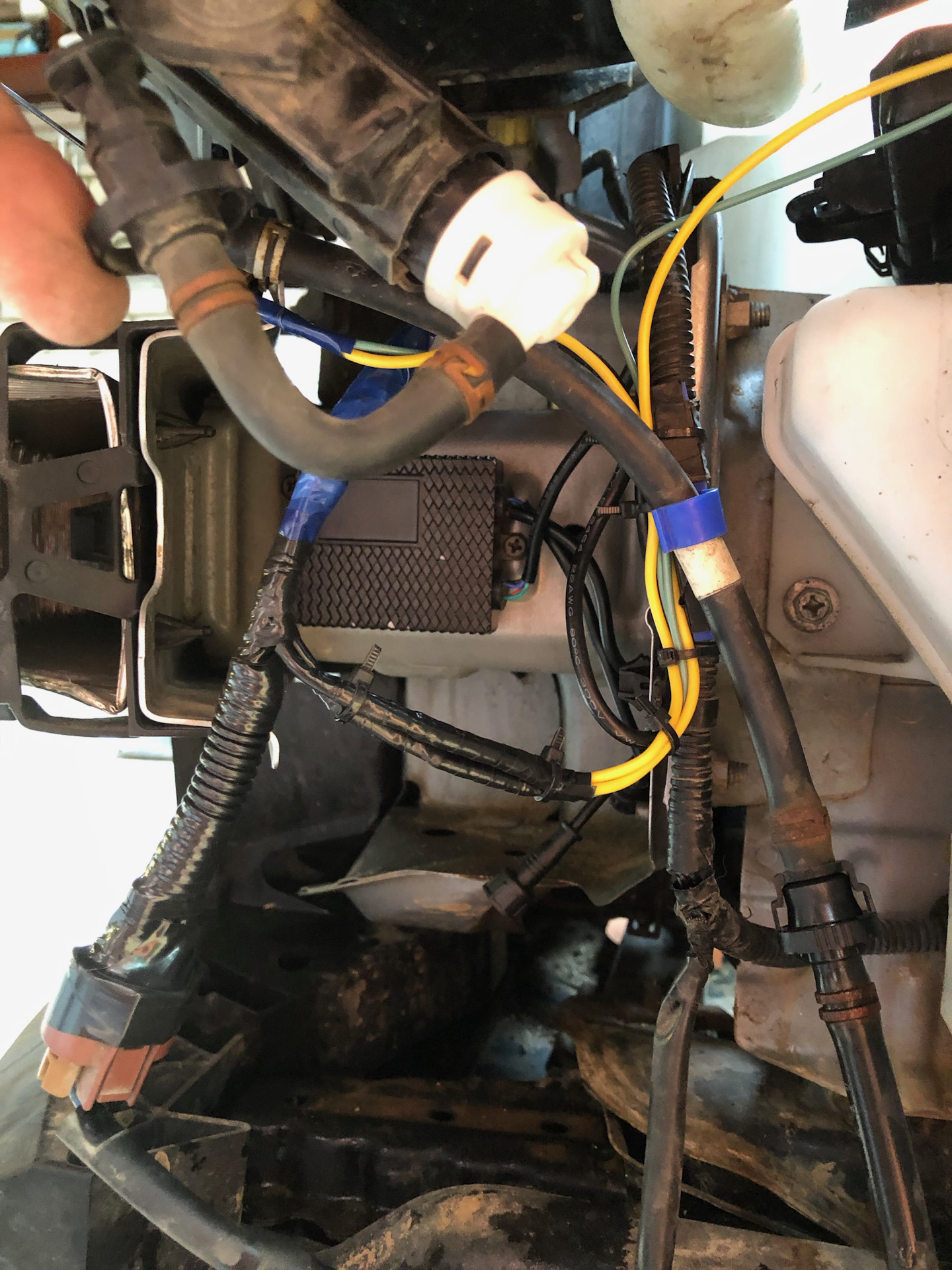 Землю я взял с ПТФ так как она там постоянная. Комутация ПТФ и ДХО под бампером вышла вот такая: