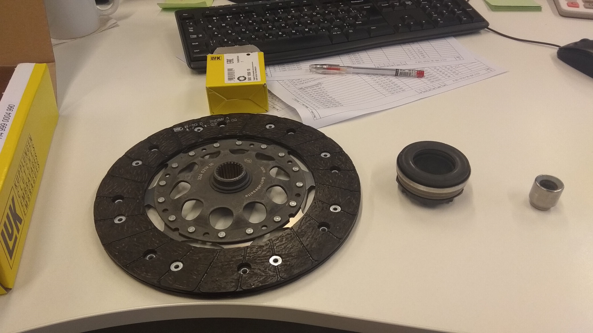 Купил новый диск сцепления, но на этот раз решил купить другой фирмы LUK 324021910. Также решил заменить выжимной подшипник LUK 500 1050 10. И вспомнил что в маховике есть игольчатый подшипник для вала коробки и его я не менял, купил новый VAG 054105329, дорого в оригинале конечно, но нормального аналога не нашёл тогда.