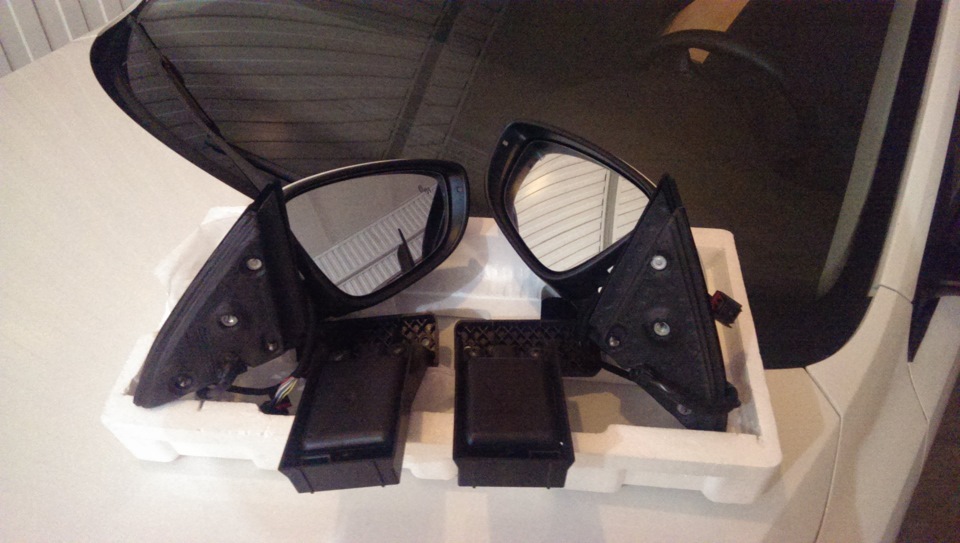 Ну пока, что могу сказать, дверные блоки от VW Tiguan (Полные блоки нужны что бы уши понимали что от них хотят, без этого не будет работать сложение зеркал) прошиты под моё авто Мишаней (его отчёт по установке 19. Замена блока Двери на Максимальный)! +) Надеюсь на этой неделе установим зеркала и блоки с парнями из Vag-Сервиса который на Ломоносова 21/1! =) Правда, ещё не хватает мелочёвки в виде пинов, проводов для сайда и самой крутилки с функцией сложения зеркал (пока не проверенный номер крутилки с хромом, хотя ЕТКА твердит, это то что Вам надо! 5C7 959 565 GXSH Выключатель зеркал с электроприводом и обогревом ., "Черный/chrom")), в начале следующей недели буду заказывать. Ну и part # блоков