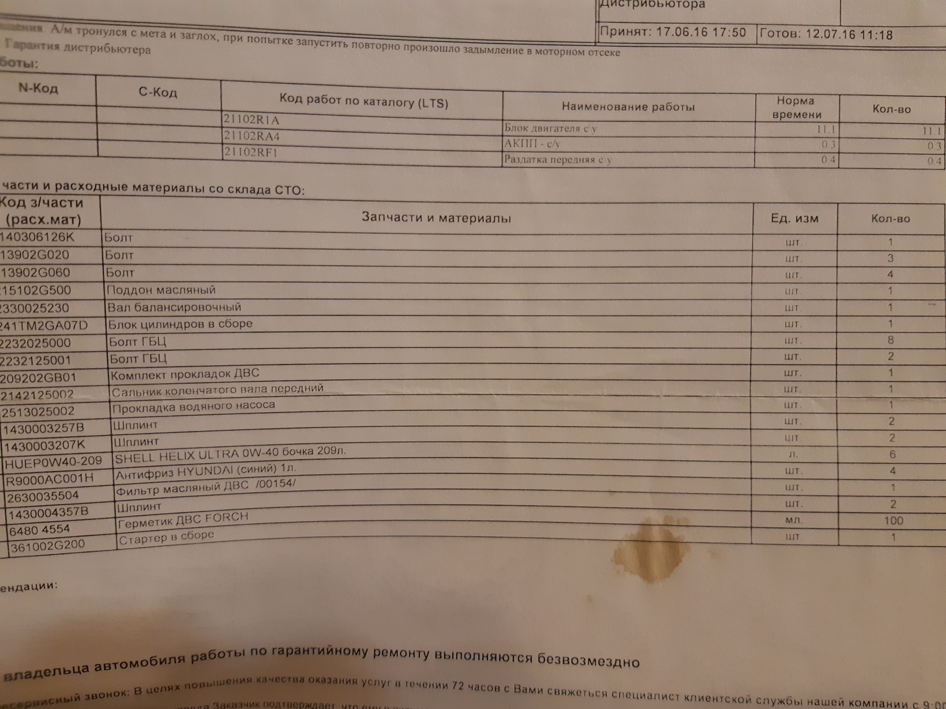 Вы отправляли двигатель ему на ремонт? Или прям привозили (пригоняли) автомобиль?