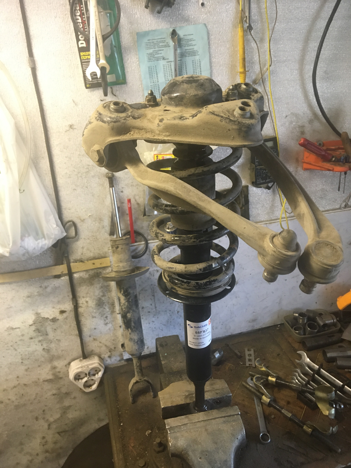 С задними всё элементарно, с передними трудности возникли при разборе стойки. Шток амортизатора сильно заржавел. На одном почистил и отмочил вд-шкой, на втором пришлось воспользоваться газовым ключем, так как шестигранник проворачивался в штоке.