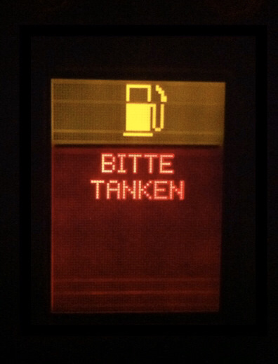 Отсюда вывод, что даже если не горит лампа "bitte tanken", при определенных обстоятельствах можно не завестись. Буду учитывать это в будущем и мордой вниз не парковаться.