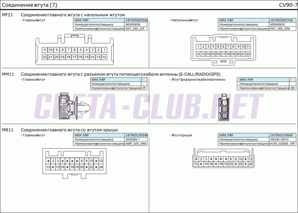 Заранее подготовил провода и пины. Пины вытащил из проводки та, что досталась мне с кнопками круиза. Единственно пинов, через которые подключается сам нагреватель руля у меня было всего 2, а нужно как оказалось 5, то есть мне не хватило 3х пинов, пришлось подбирать неоригинальные. По мелким пинам проблем не возникло. Хочу сказать, что напольный жгут полный и провода от блока кнопок протаскивать не надо. Нужно кинуть только 2 провода до соединителя MF21 (22 и 16 контакты соответственно). Соединитель находится внизу, справа за пластиковой накладкой.