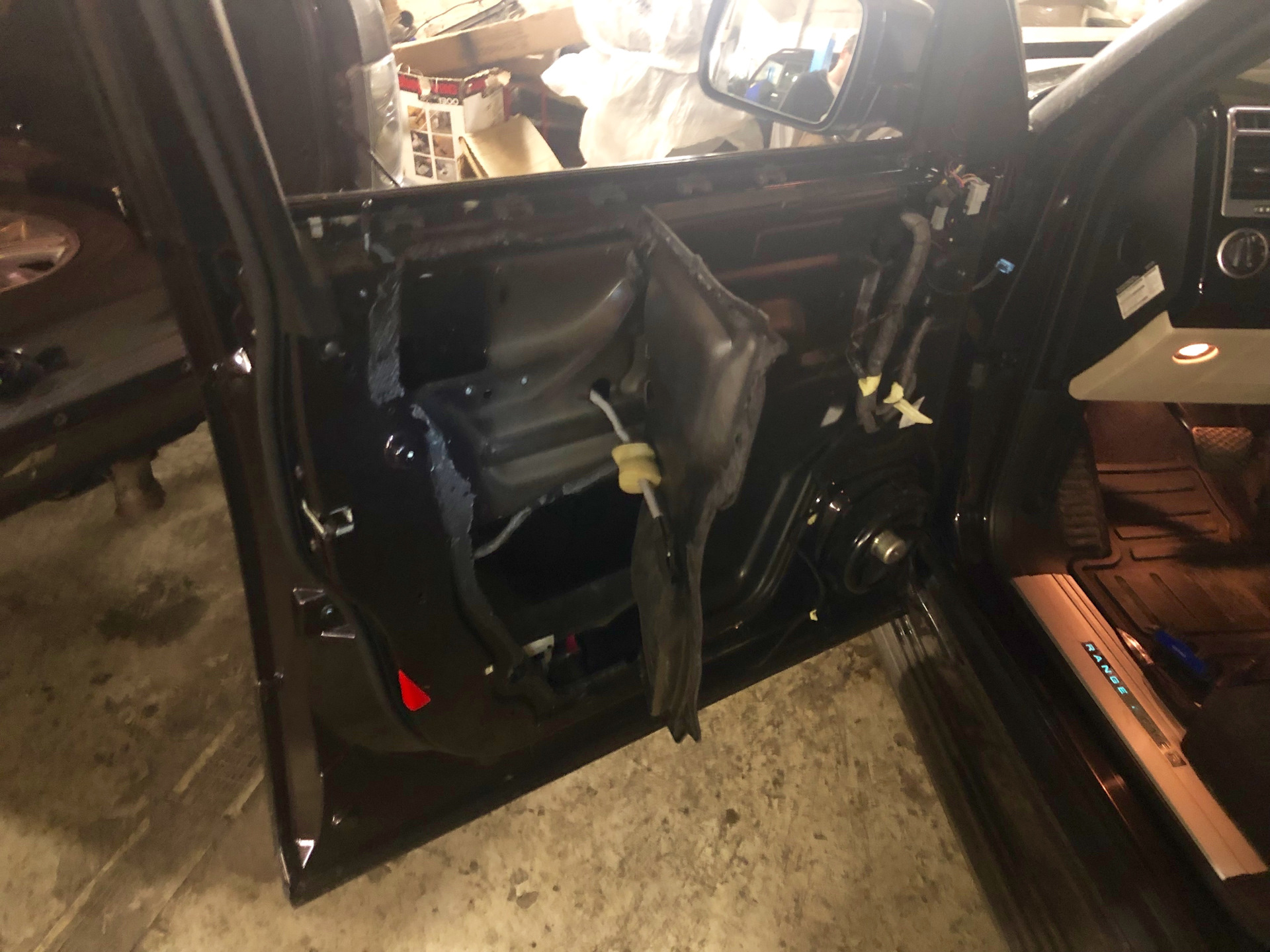 Это проблема всех кузовов л322, снимаем карту, под ней шумку и далее видно тросики и их крепления у замка, я и замок вынимал заодно …