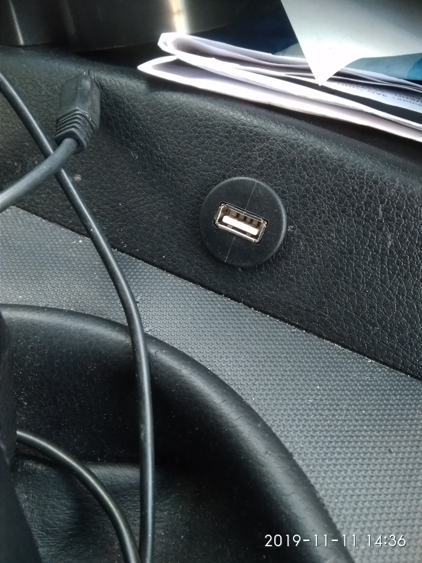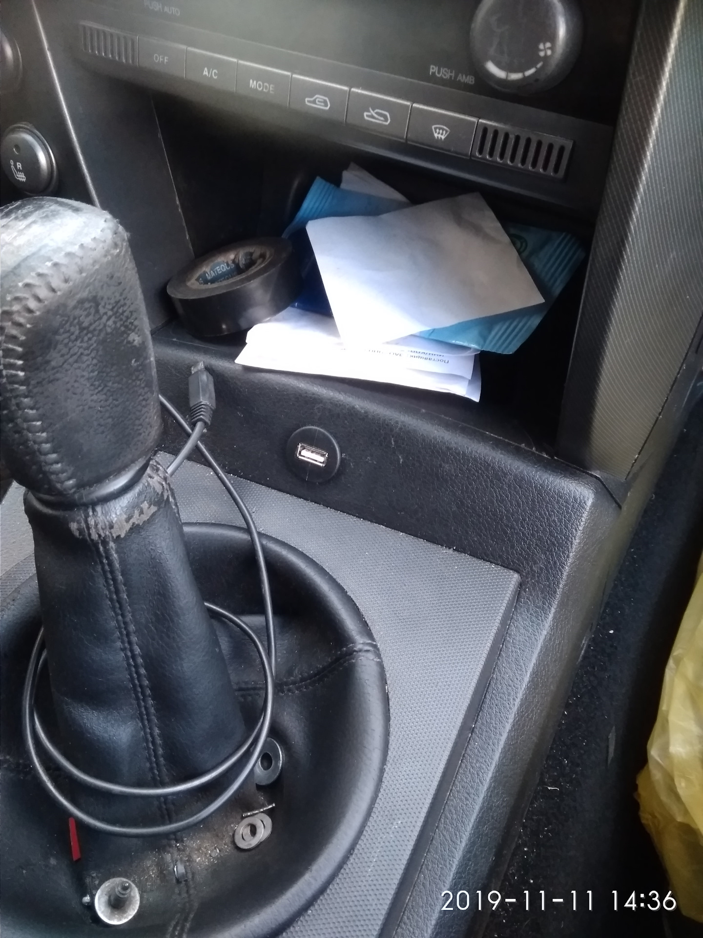 На другом врезал разетку USB, подключена к одному из разъемов на магнитоле.