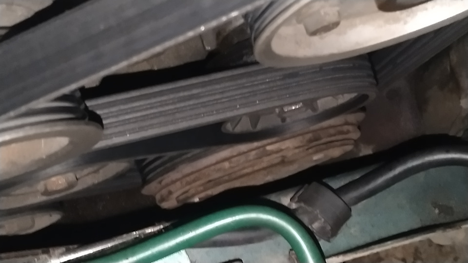 Помыл автомобиль и решил проверить уровень масла, рука потянулась к щупу, а глаза потянулись к ремню генератора… Рука не нашла щуп, застыв на полпути. Глаза передали импульс в мозг, что уровень масла на данный момент вообще не должен парить, потому что ремень уже частично сполз с ролика и соскочил на один ручеёк со шкива коленвала в направлении улицы. И при чем уже давно, судя по грязным следам на шкиве ((