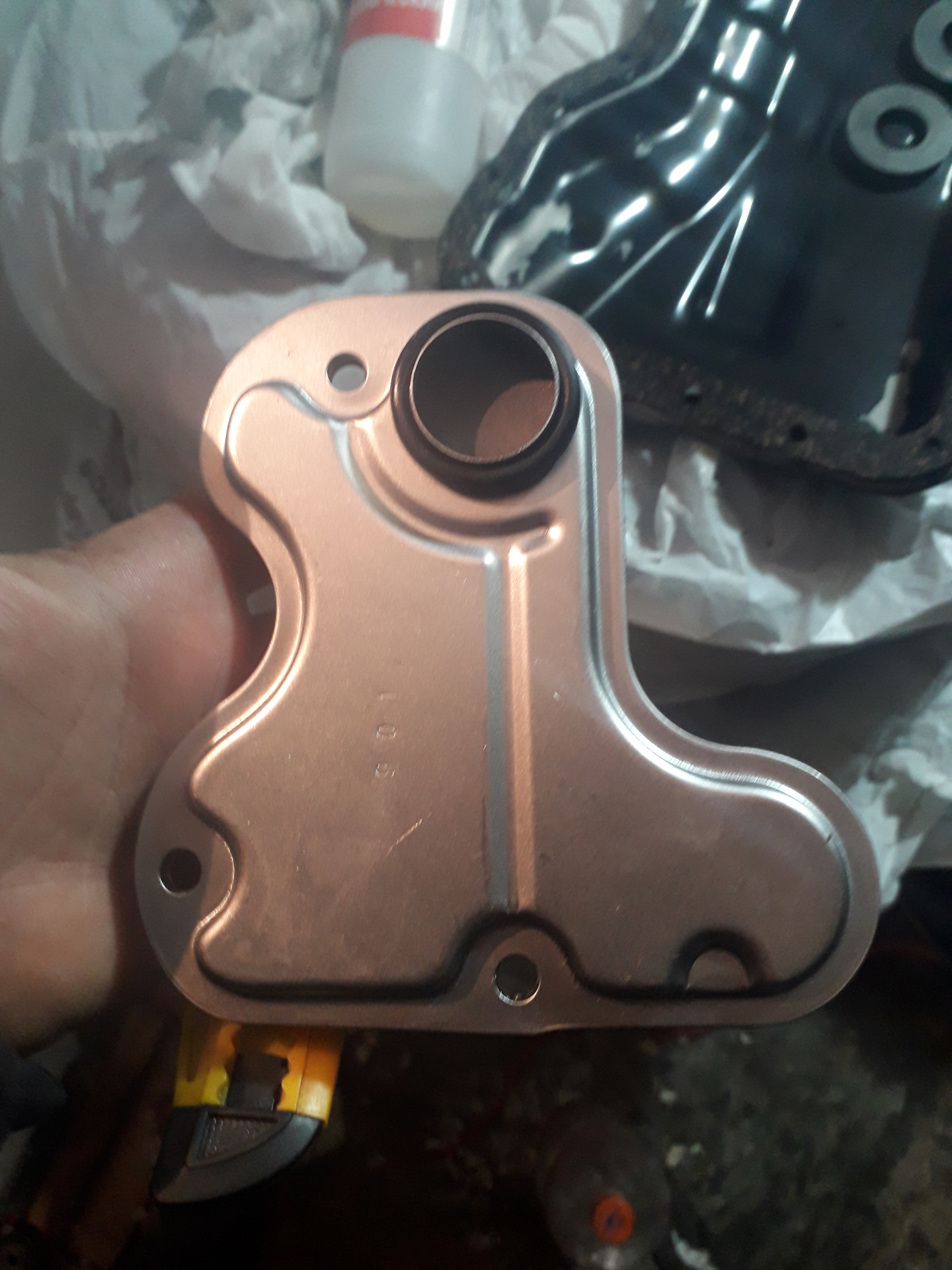 Снял фильтр, обратите внимание: немного погнуто отверстие под резиновое колечко-прокладку! Это одна из причин вспенивания масла. еще один балл в пользу криворукого мастера по замене рабочей жидкости в АКПП (Маслом язык не поворачивается эту жижу назвать, не масло это совсем).