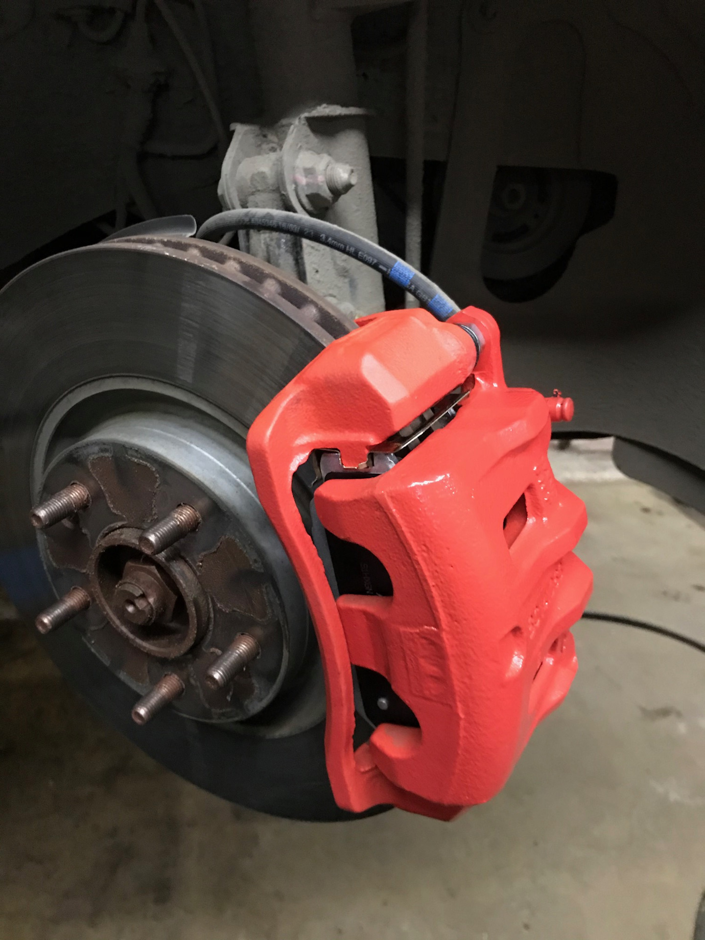 Приблизительно так выглядит разница — колодка от заводских суппортов утонула в двухпоршневом суппорте))