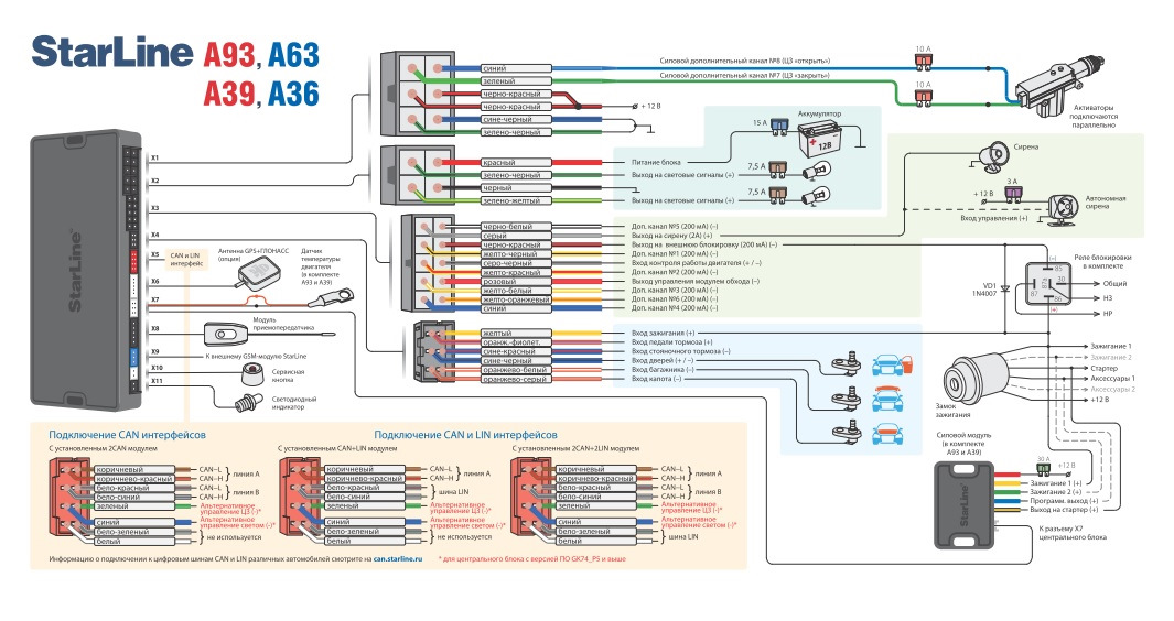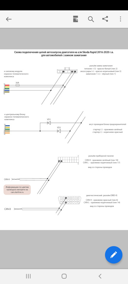 Ясно, спасибо! Схема с официального сайта старлайн)). Ну всё, теперь как говорится, картина маслом!). Знаю, что куда тянуть и подключить. Главное сначала подключить CAN b и попробовать прописать безключевой обходчик иммобилайзера)!