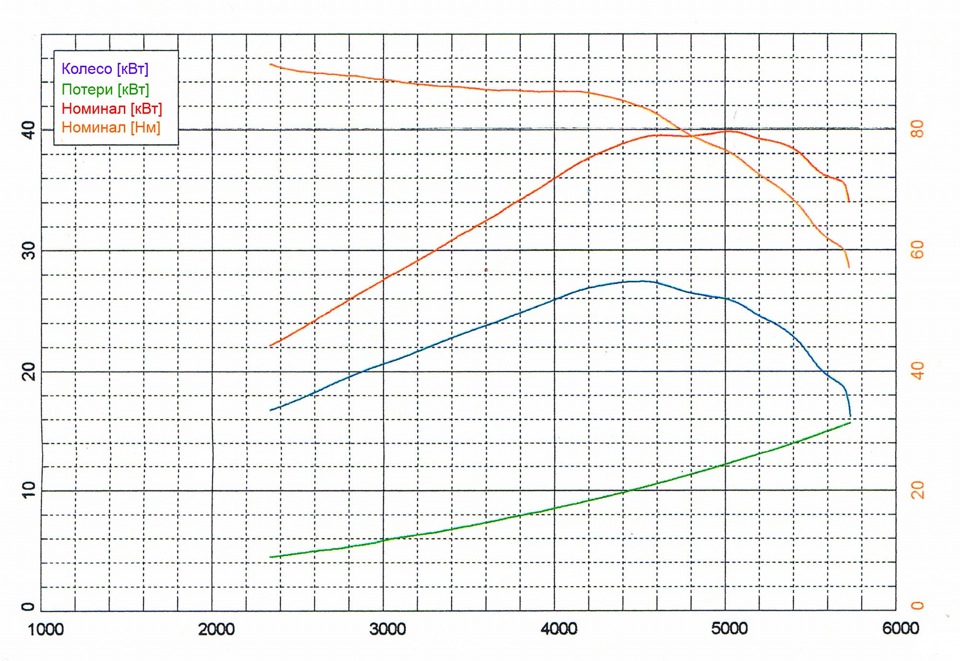 Вроде, как на замере на графике 54лс это с колес, а на маховике под 80лс