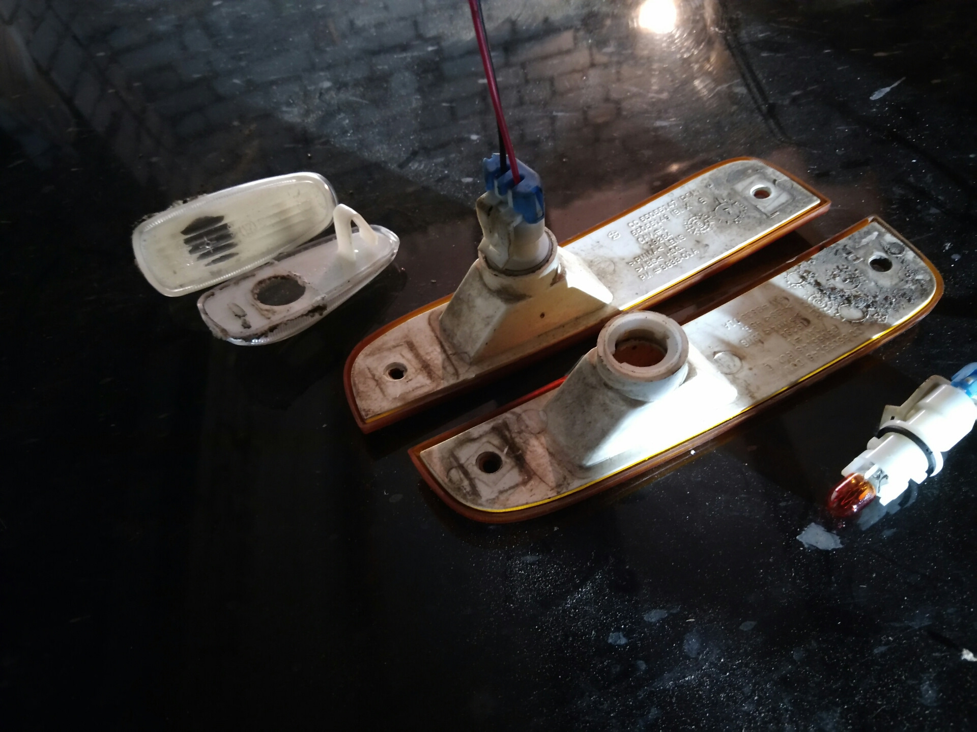 Из за установки бушвакеров боковые поворотники исчезли, пришлось втыкать в морковки.Начало было офигенное, отрезанные жопки поворотников от тазиков в корпус морковок встали как родные, но вся красивая конструкция в крыло не убралась. Пришлось резать патрон от лампочки и заливать герметиком В целом работает отлично, я доволен.