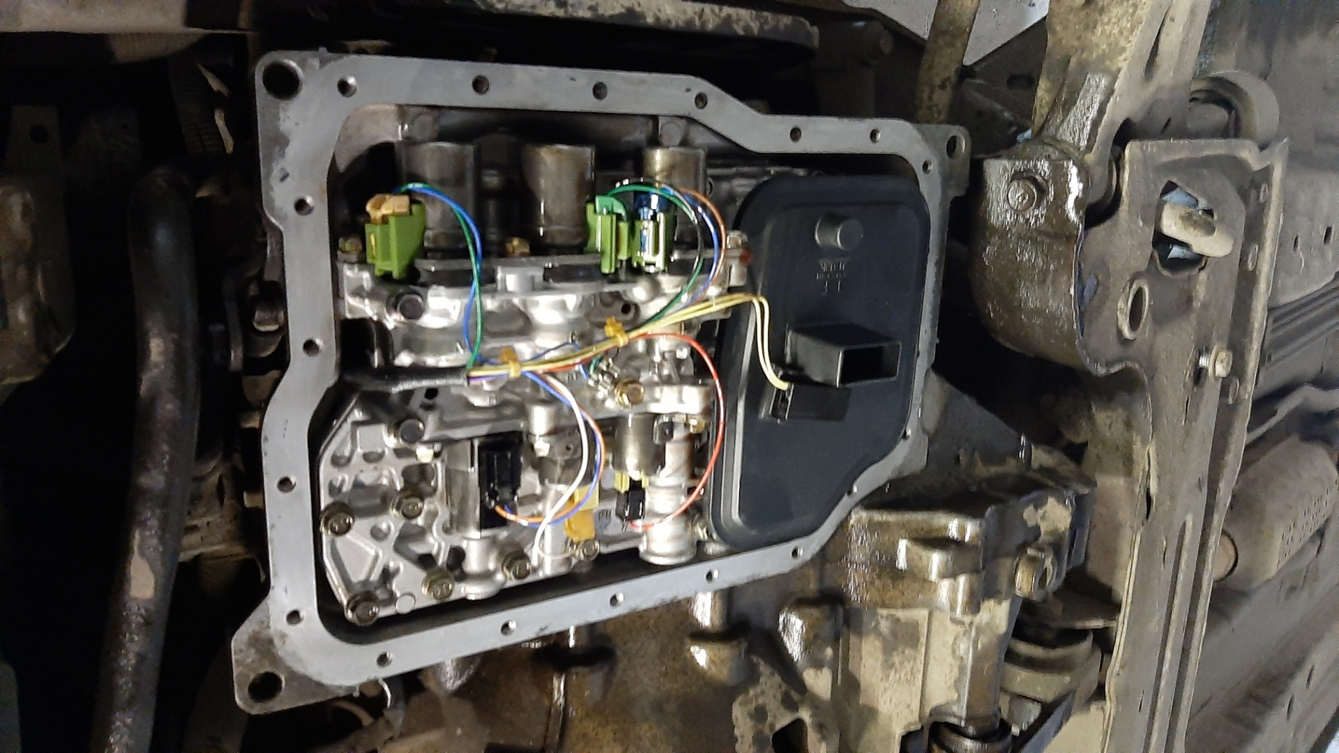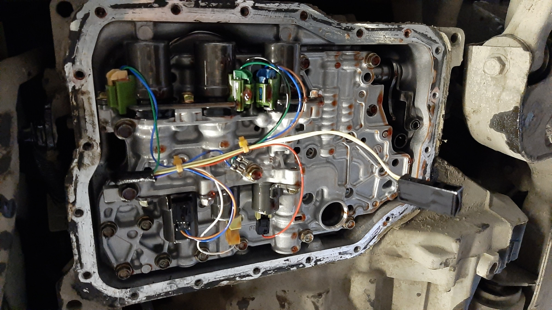 3. Чтобы добраться до тяги снимаем отключаем фишки саленоидов и снимаем гидроблок.