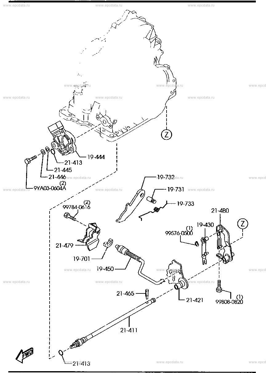 И соответственно главный финт ушами – это замена тяги селектора АКПП классического автомата на тягу под селектор активматик, ценой в 1483 р. Явно дешевле контрактной коробки. Если кто не знал – да! они отличаются. ))) И ниже собственно доказательство! У меня есть естественно есть номер своего кузова DY3W, и есть номер кузова DY5W, с которого собственно снят мой контактный двиг со спорт-мозгами.