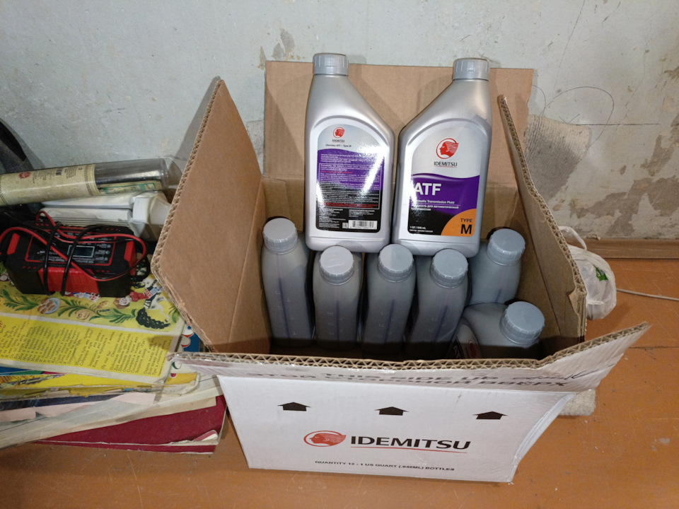 Всем нам известно об неимоверно конском ценнике на масло в банке Mazda, и так же все мы прекрасно осведомлены что в те баночки объемом 0.946 л ценой в 1 к+ залито. Потому выбор масла для меня очевиден – Idemitsu ATF Type M, общей стоимостью 4396 р.