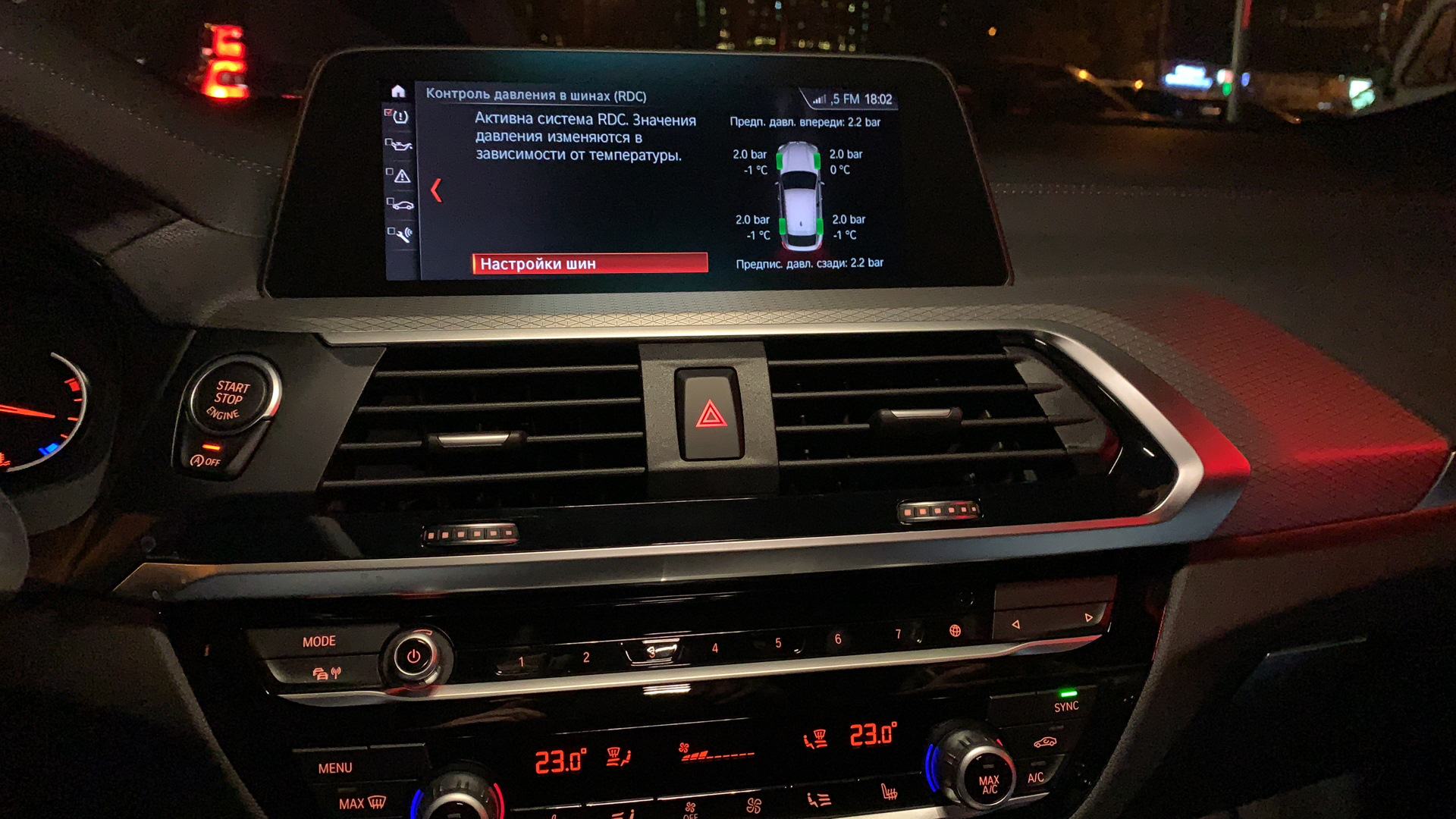 Накачал по рекомендации ГУ — тут учитывается температура — как сейчас на картинке, при 0 он рекомендует 2.2. Если температура в колёсах повысится он уже будет рекомендовать 2.4