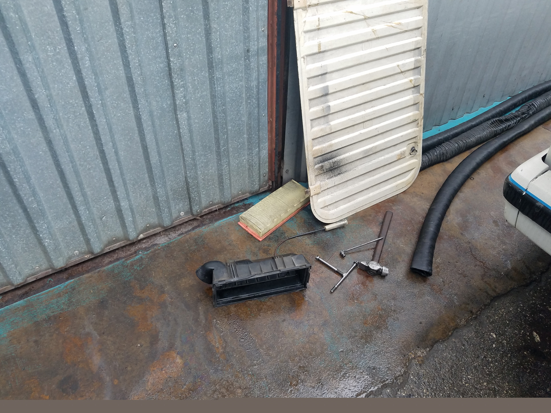 В общем вызвал я утром на всякий случай знакомого дизелиста, посмотрели с ним метки, все провода. потыкал он куда то там свою контрольку и говорит запускай. Покрутил немного стартером и, надо же, двиг запустился. Но… задымил он белым так, что через пару секунд наш двор заволокло густым туманом. Хорошо людей никого во дворе не было. На все мои претензии к ТНВД, дизелист настоял что не в нём дело. В общем поехал я в автосервис. Поковырялись мы там с уже другим хорошим дизелистом, погазовали, посмотрели уровень антифриза и наконец то решили вытянуть щуп. Та-да-а-а-ам… эмульсия, чьёрт бобьери. Но как же так? Ведь антифриз на месте и чистенький. Сдёргиваем воздушный фильтр, а там коробка фильтра наполовину с водой и с фильтра течёт как из душа.