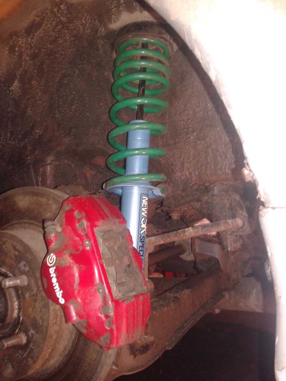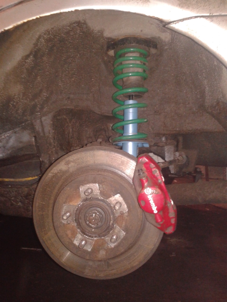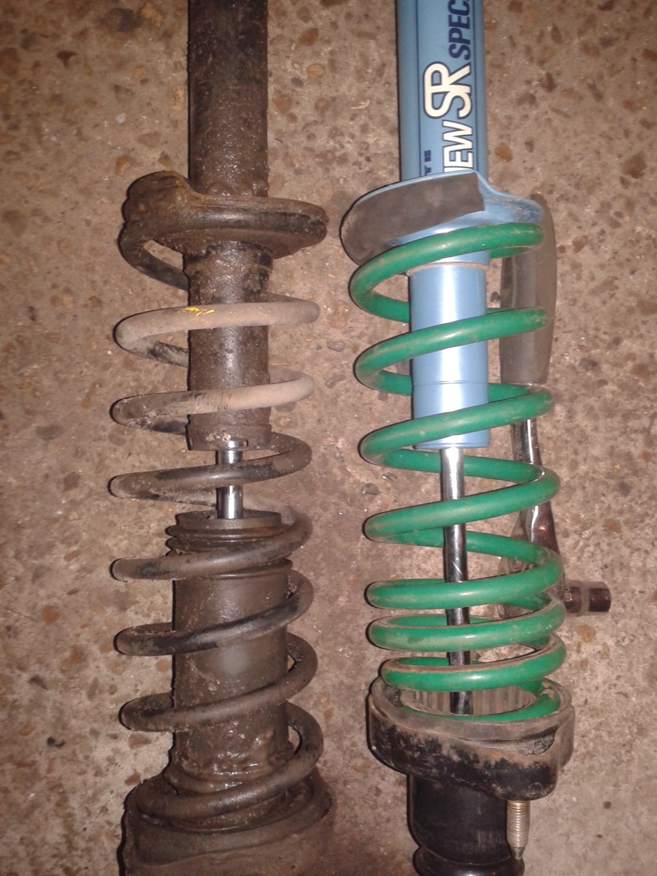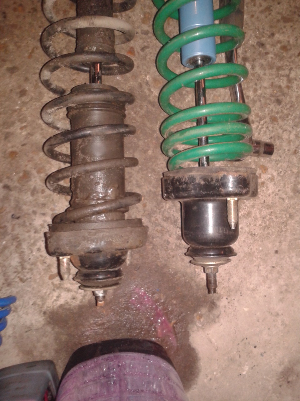 Долго думал с какой комплектностью собирать стойки и вот принял решение сесть на пружинки TEIN (GREEN) EVO 9 (как и перед) — также выбор был пружинами синего цвета доставшимися в комплекте с аммо, возможно коябики с переменным шагом. Но на ручной сжим и толщину витка казались весьма дрищёвыми.
