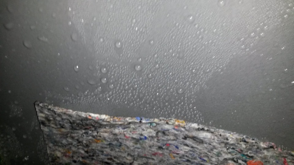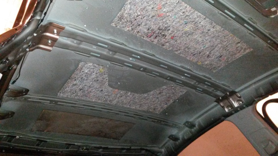 В общем надоела мне вода в плафоне и мокрые уголки стоек при перепадах температуры. Снял обшивку, а там просто все в воде… Протирал и выжимал тряпку. Оставил в гараже, чтобы высушилась. На следующий день проклеил виброй.