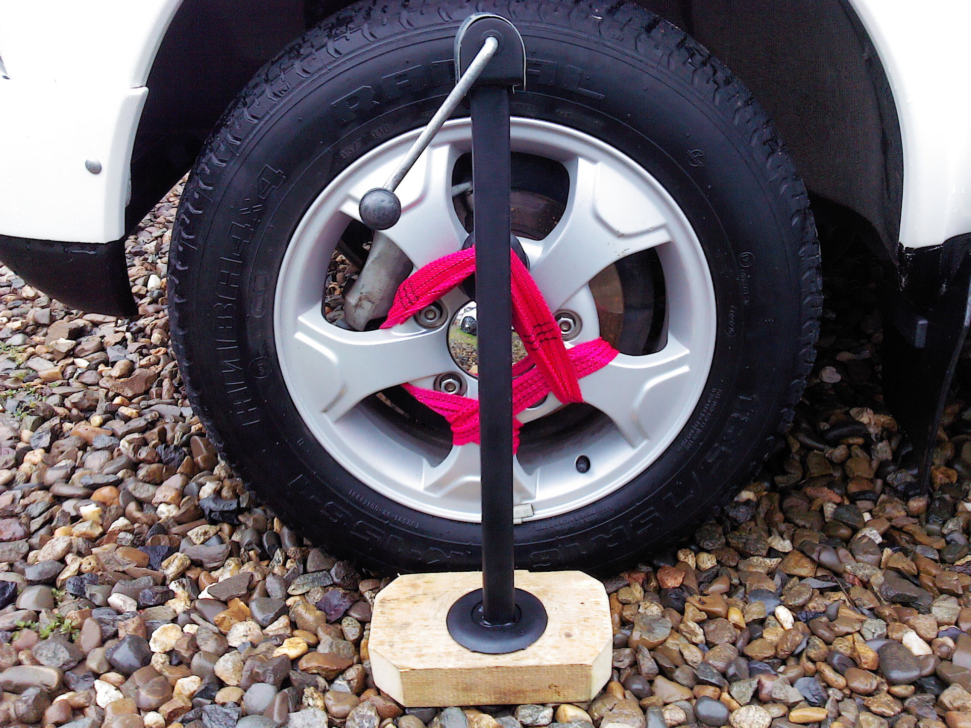 я непонял для чего поднимать колесо? А домкрат сделал зачётно.