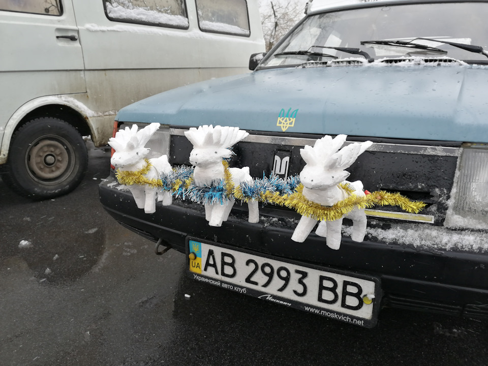 Олени из пенопласта, делал сам, ставятся и одеваются на два болтика крепления решетки… Хотя эти олени больше на лося похожи… Ну да ладно…