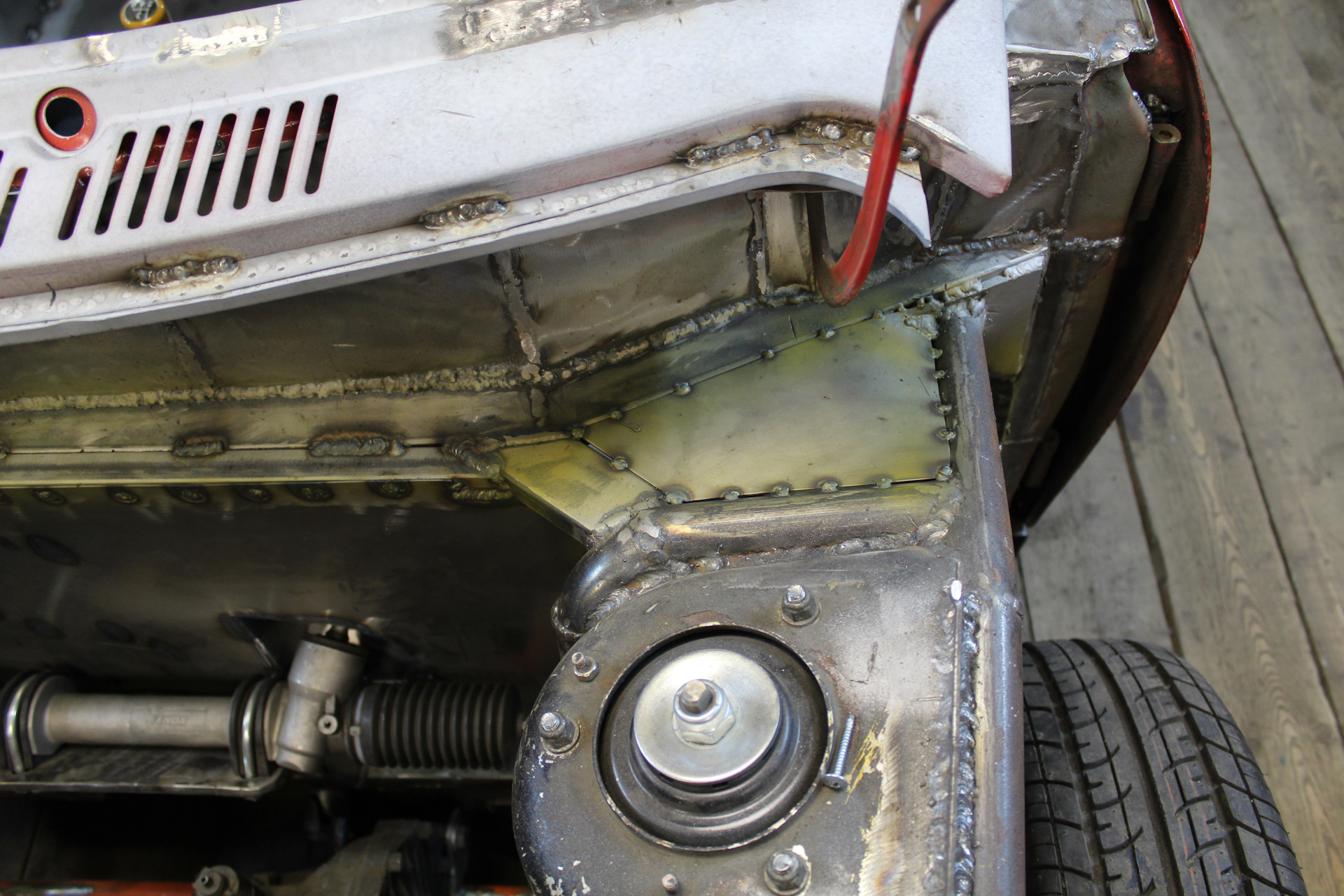 Прихватил на машине, еще раз все проверил и окончательно обварил весь моторный щит, плюс сделал косынки на силовую конструкцию рамы, для усиления.