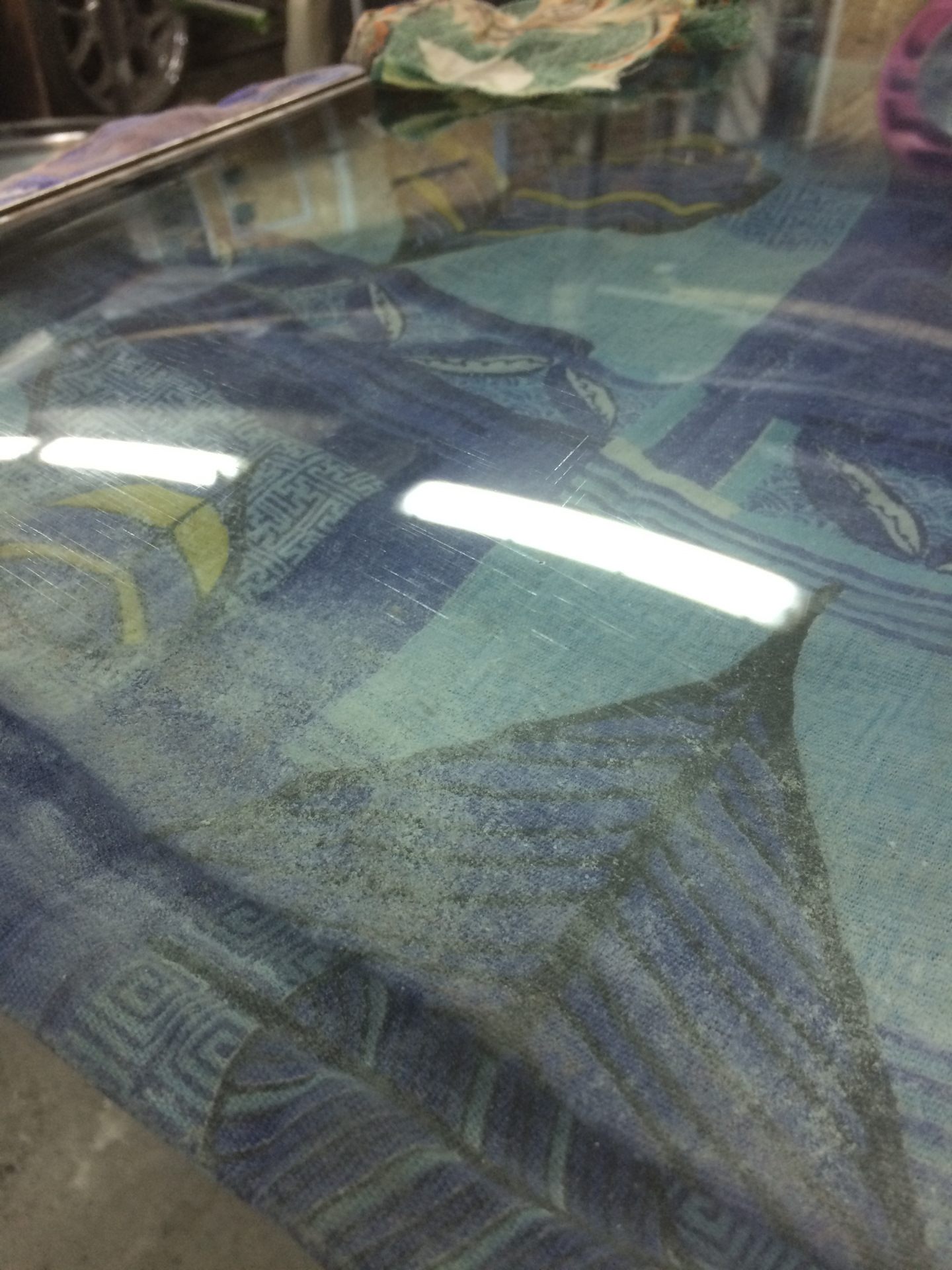 Вот такие риски от бархоток остались на трёх стеклах, а вот четвёртое стекло имеет большую проблему но о нем чуть позже.