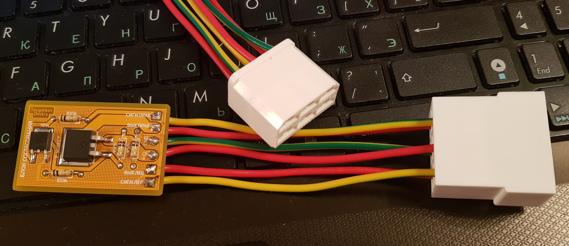 Я, поскольку не обладаю такими знаниями, собрал устройство на кусочке текстолита из двух микрорелюшек от сигалки. Тоже все работает.)