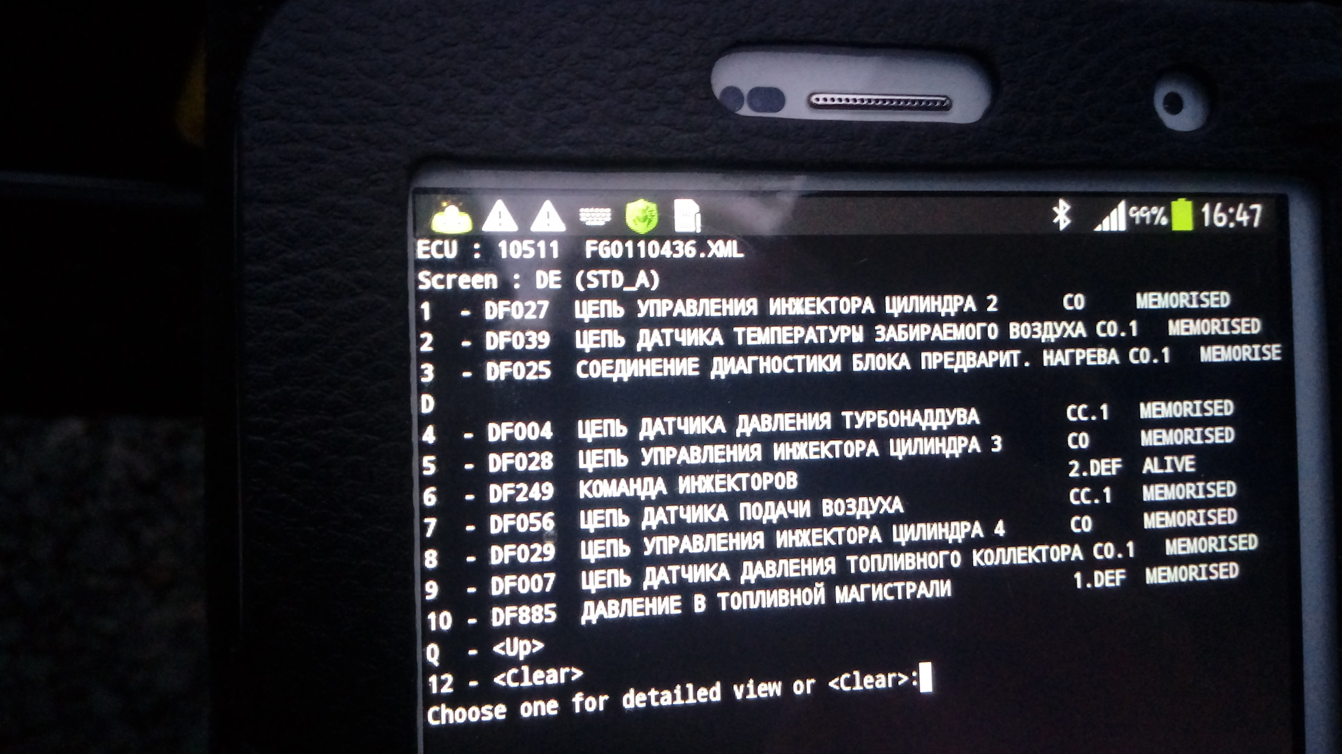 Ошибки с подписью MEMORISED(запомненные)-неактивны и неопасны.А вот с надписью ALIVE- активная, то есть действующая, это значит что именно она не дает запустить мотор.Код ошибки можно загуглить и узнаешь точно в чем заморочка.Это я предположил что команда инжекторов это форсунка или тнвд, а код ошибки укажет более точно
