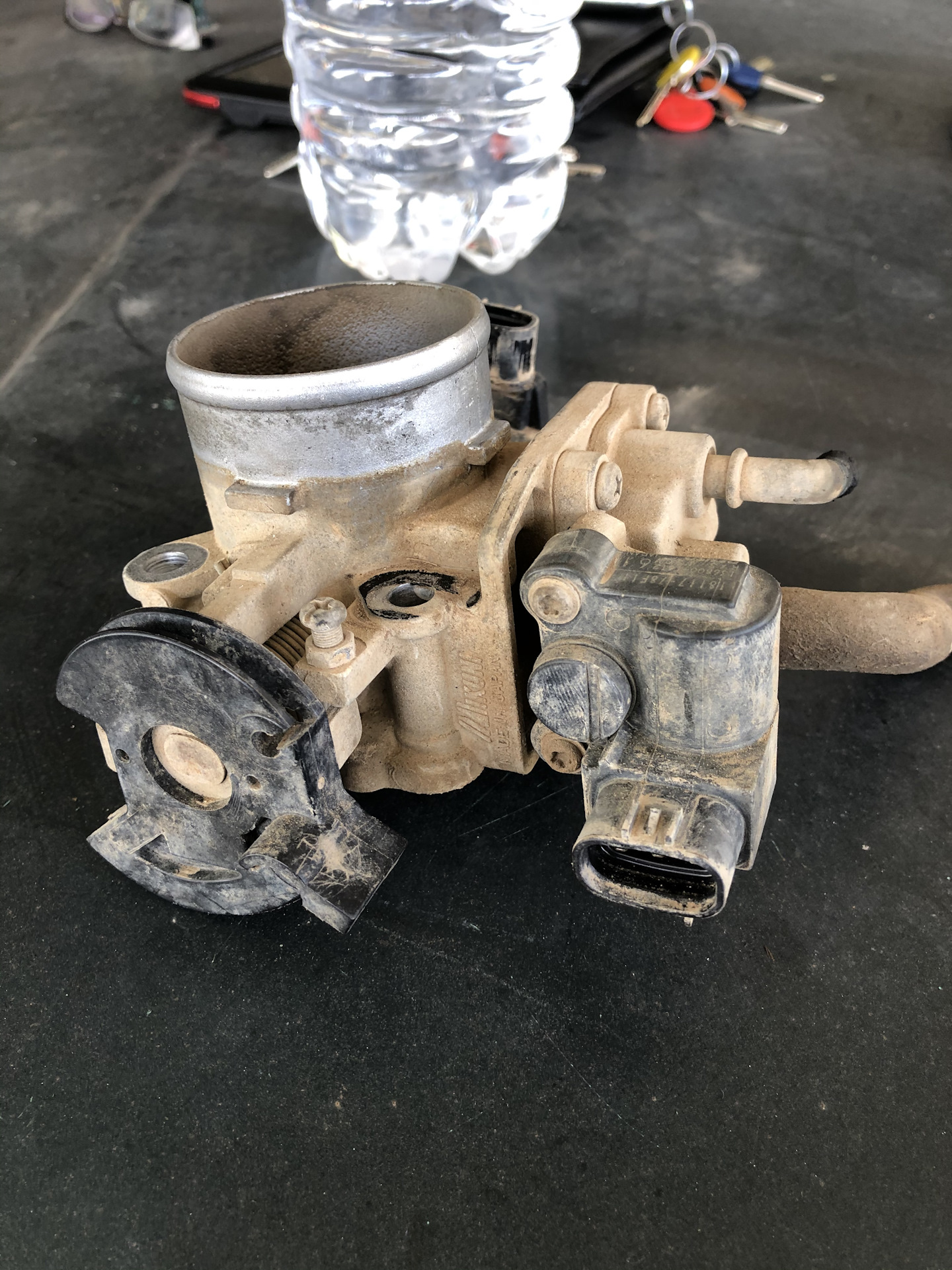 Снимаем блок дроссельной заслонки и можно снять термостат. Нужны пальцы спайдермена и ключ на 10 с шарниром.