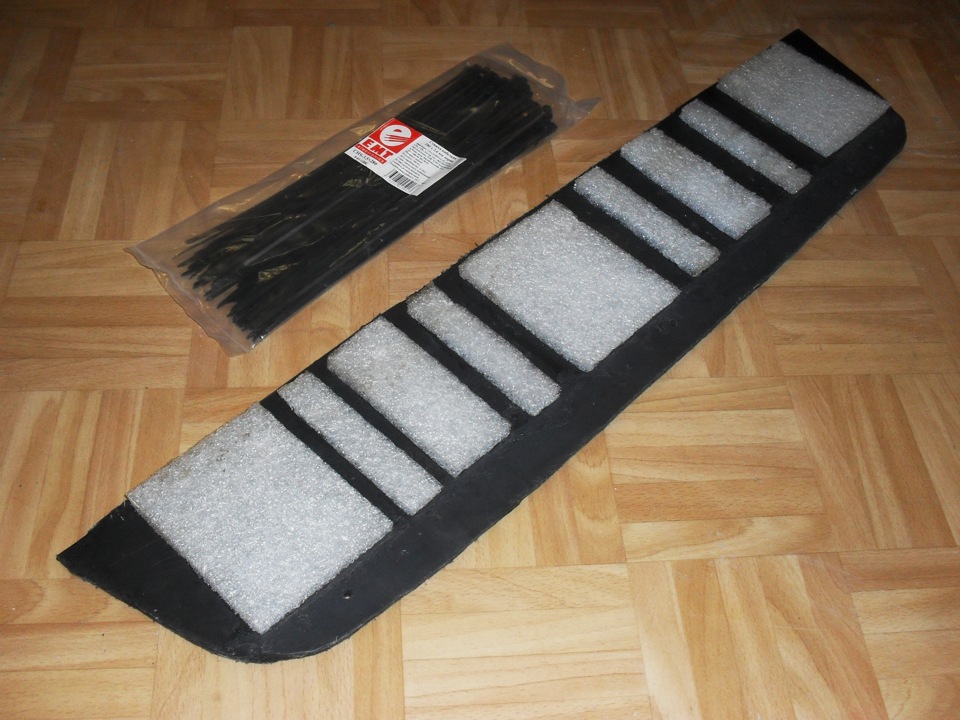 Сделал такую вот "зимню решоточку". Потребывалось : 2 листа пластмасы (дал знакомый), длиные хомуты и время. С верхом не стал заморачиватся и зделал как все — кусок картона под решотку.