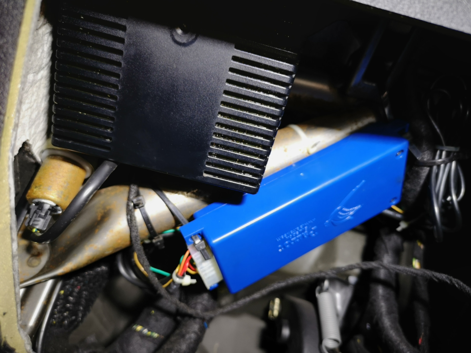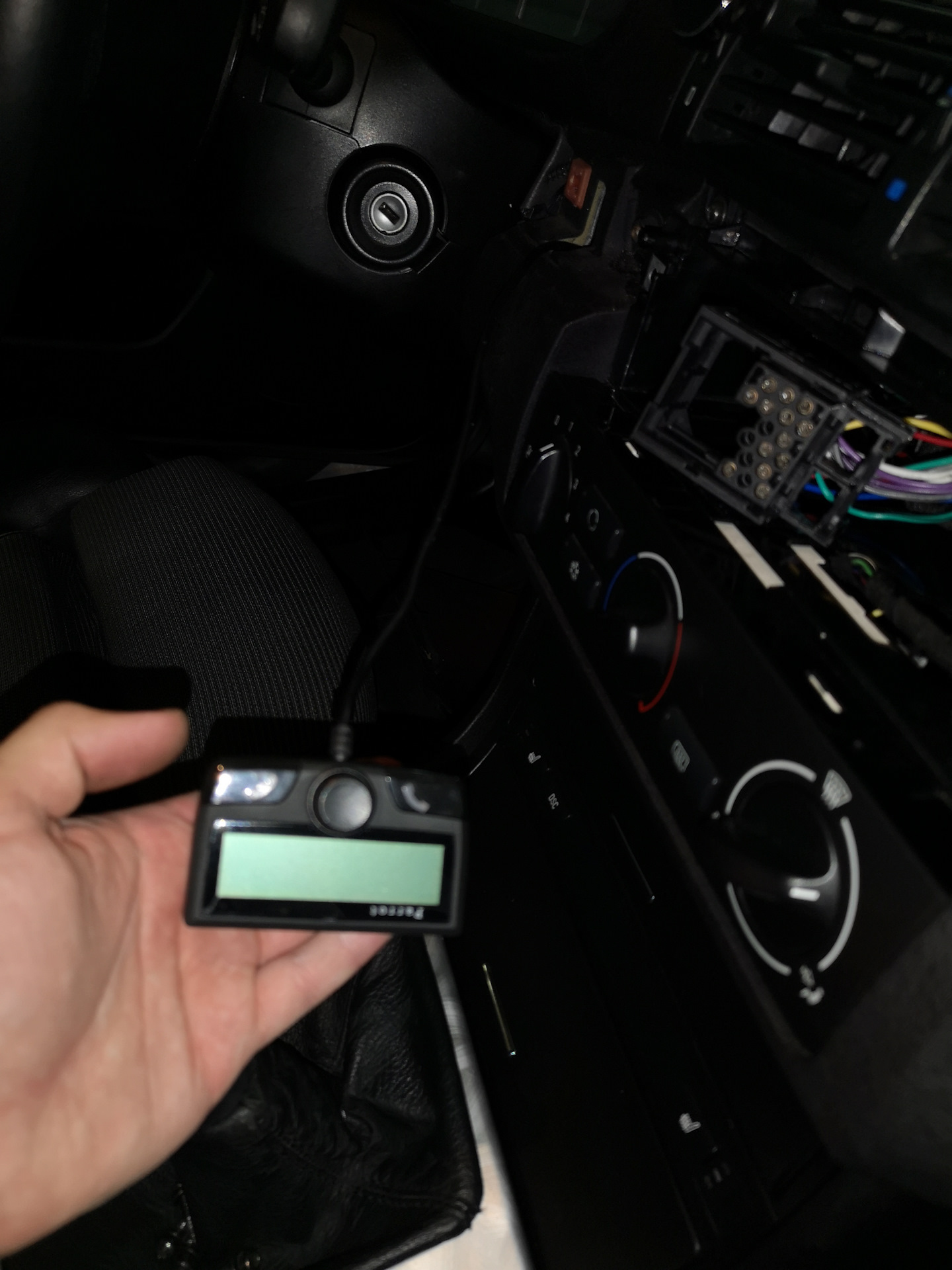 Однако, как оказалось, устройство очень серьезное, и оно имеет центральный блок, а я то думал, что сам экранчик — это и есть все устройство… Пришлось взрывать все обшивки в ногах водителя и доставать магнитолу. Руки все еще помнят каждый винтик в Е46, проблем вообще не возникло =)