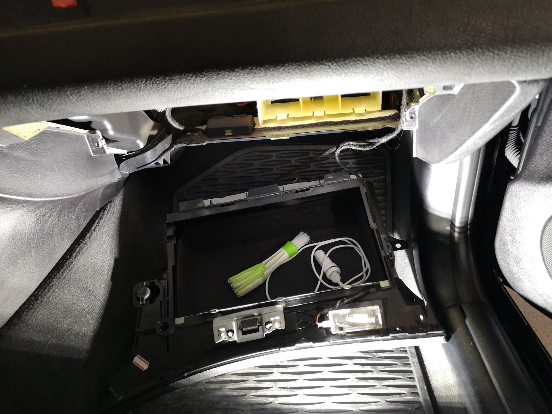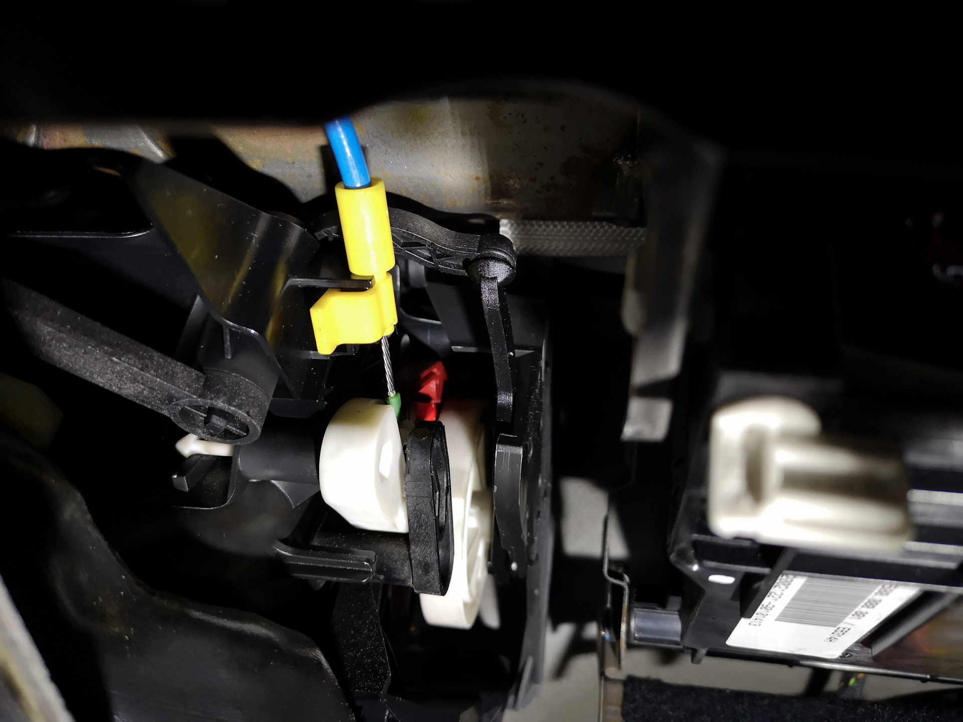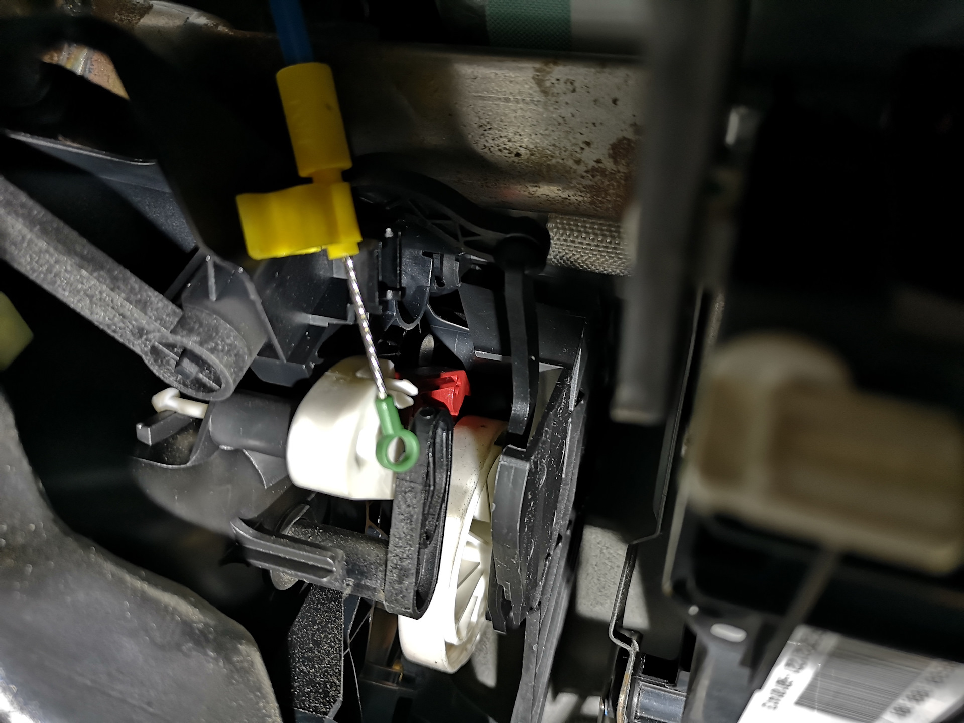 Чтобы отсоединить тросик, пришлось снимать бардачок.