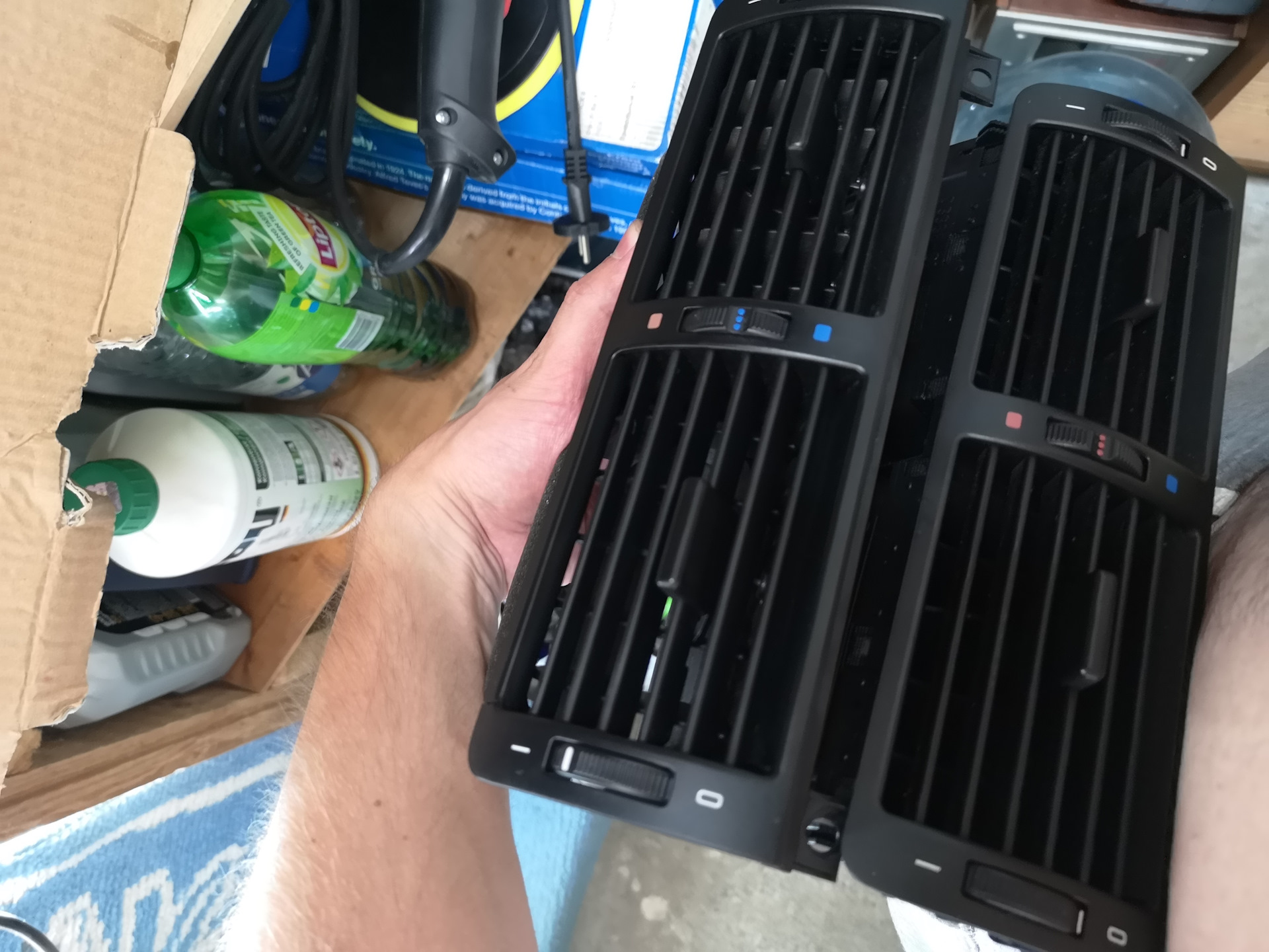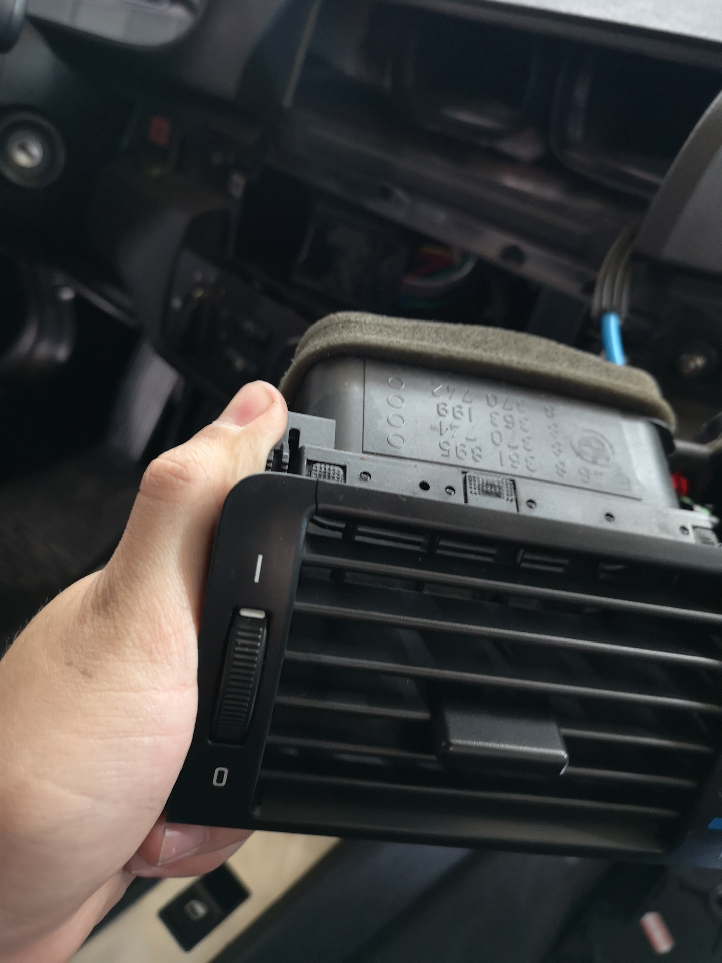 Раз уж я снимал магнитолу, грех было не поменять треснутый центральный воздуховод, благо новый лежал у меня (бывший владелец отдал вместе с машиной).